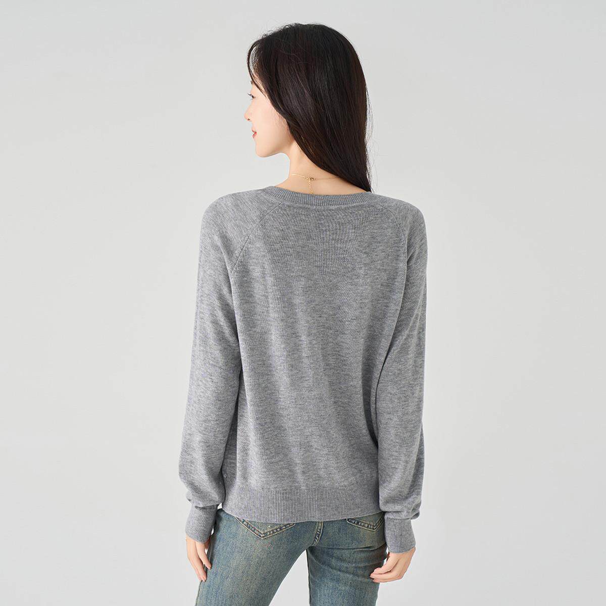 反季清仓春秋新款V领羊绒开衫女外搭纯色大码毛衣打底针织衫外搭