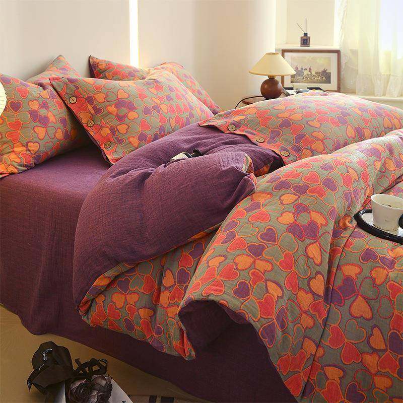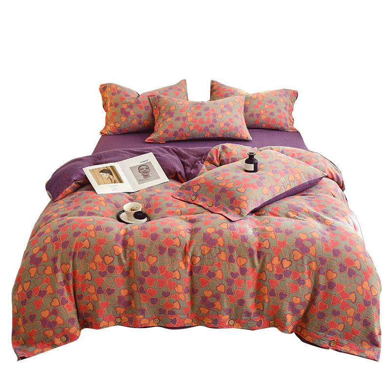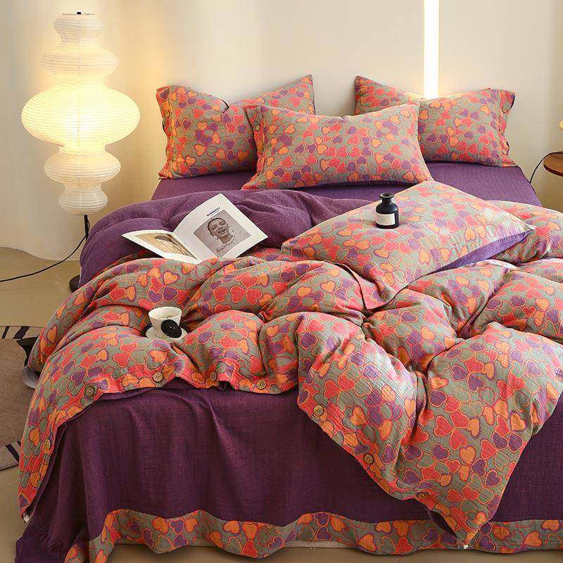 2025纽扣 色织全棉双层纱布四件套四季A类母婴级裸睡柔软床上用品