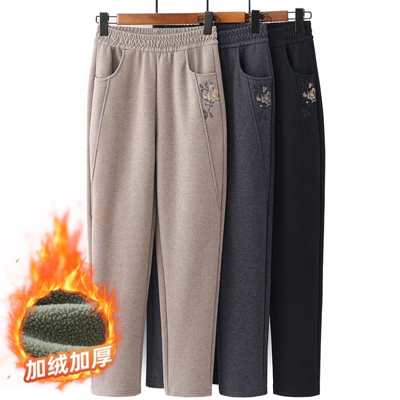 妈妈秋冬款裤子中老年人女款加绒加厚老人奶奶松紧腰休闲裤灰色