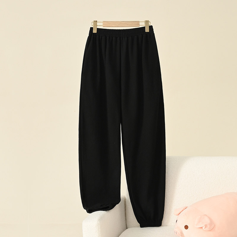 百分百纯棉女休闲家居睡裤宽松大码高腰春夏秋薄款长裤直筒空调裤