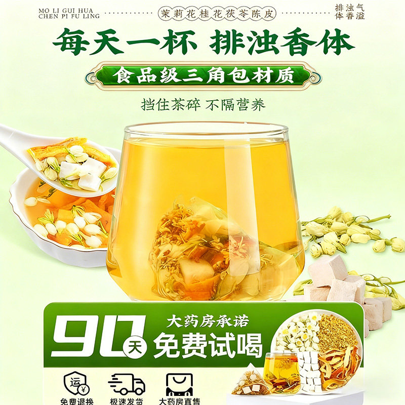茶包桂花茉莉花茯苓陈皮官方正品排浊气体香女生泡水喝的花茶养生