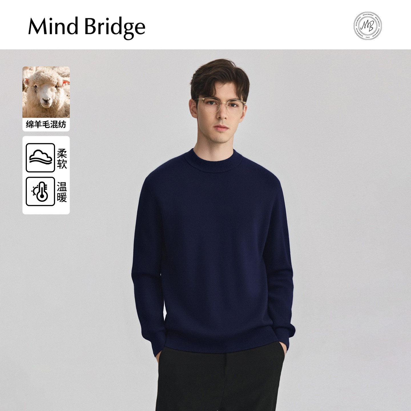 Mind Bridge【山羊绒】2025年冬纯色羊毛衫男士休闲毛衣厚款针织