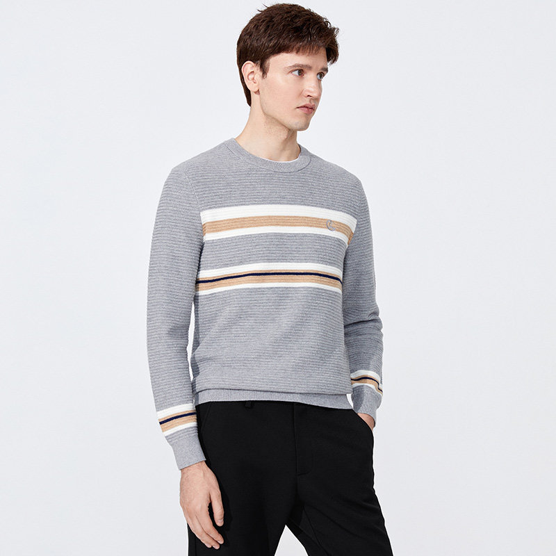 森马毛衫男冬季满版提花针织衫撞色毛衣宽松套头衫百搭提花潮-TK
