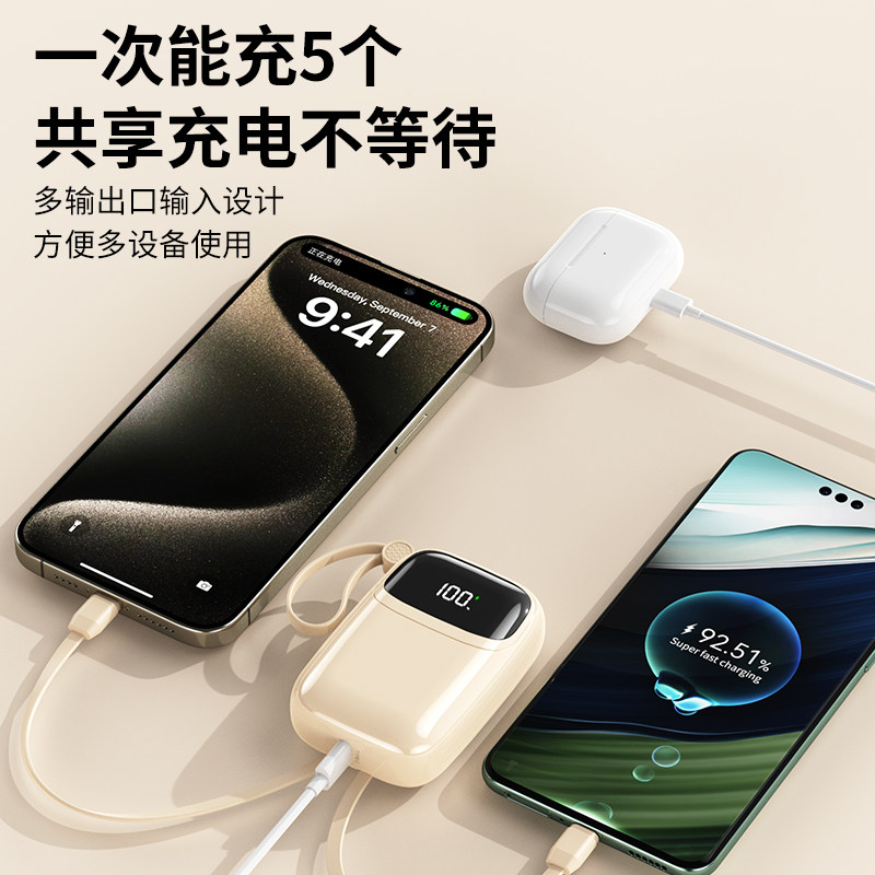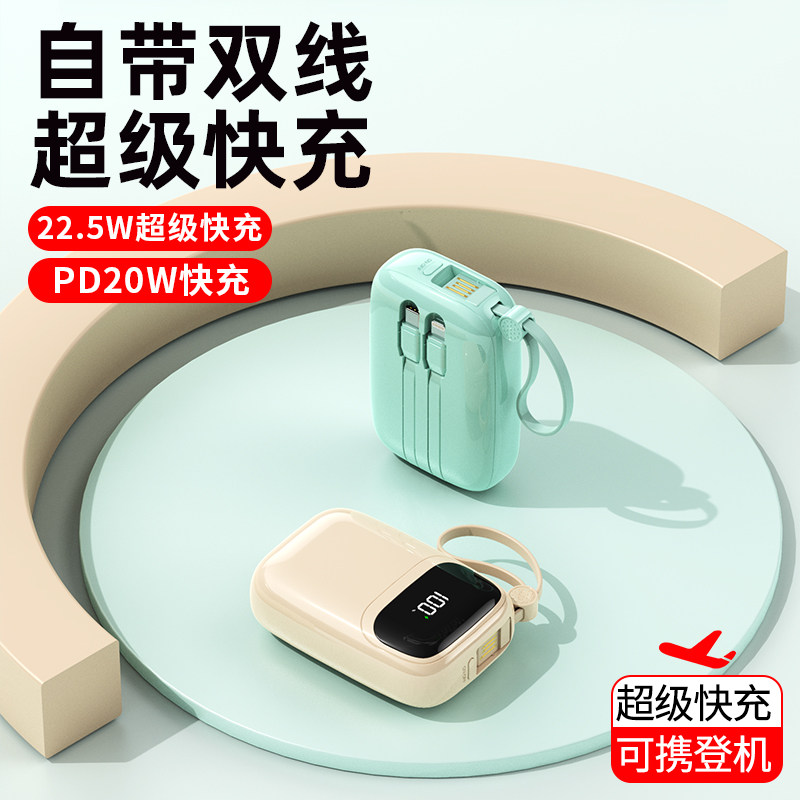 3C2025新款超级充电宝超大容量20000毫安自带线正品快充迷你移动电源适用华为苹果手机专用超薄小巧便携高铁