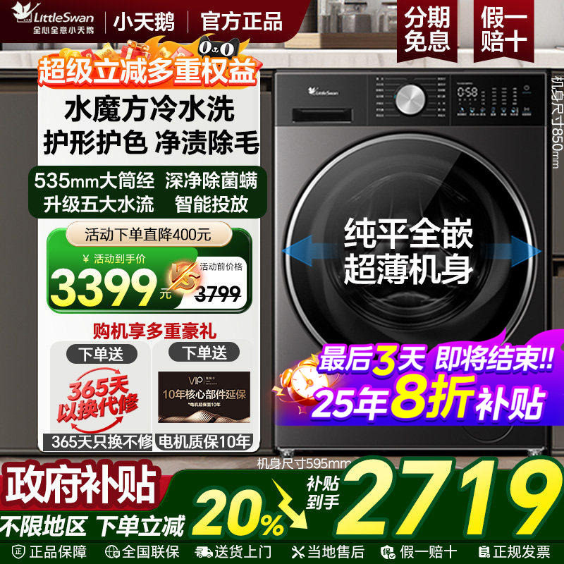 [纯平全嵌]小天鹅小乌梅3.0家用10kg全自动滚筒洗衣机水魔方变频