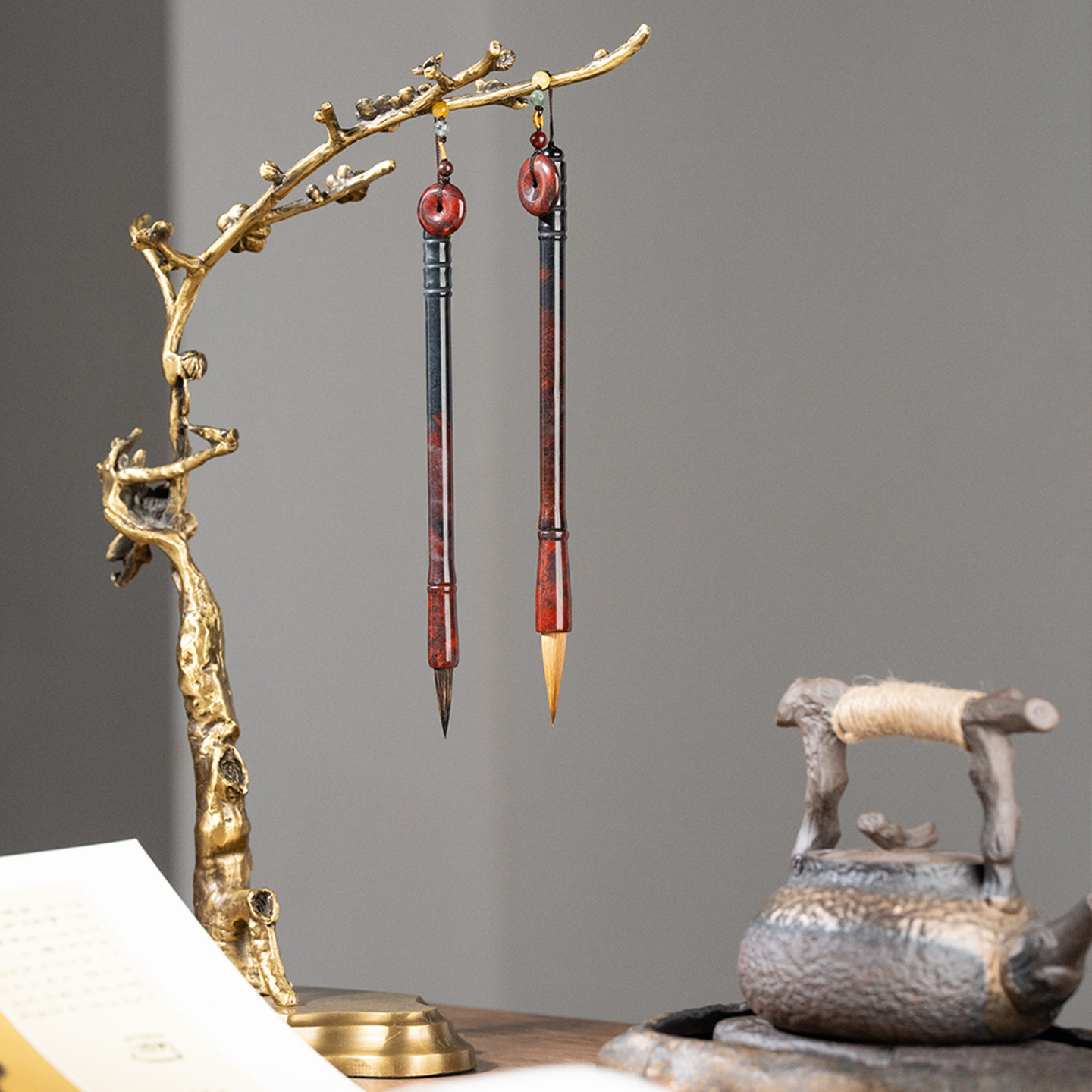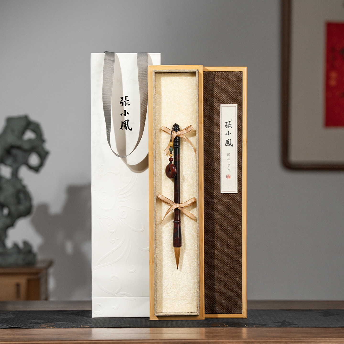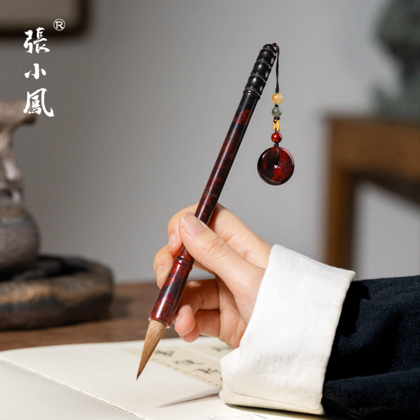 张小凤 玄宸 鸡血玉毛笔礼盒天然玉石高端行书楷书纯狼毫紫毫专业级湖笔书法专业送礼专用礼品中楷套装湖笔