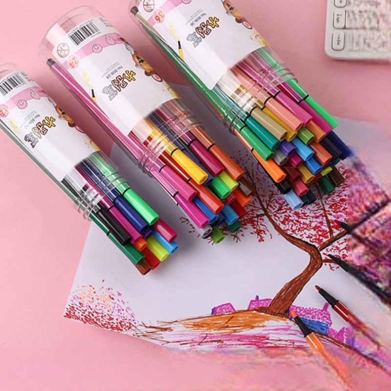 水彩笔24色儿童可水洗无毒幼儿园宝宝小学生画画笔彩笔绘画工具套装专用12色36色48色可洗涂色彩色笔可洗