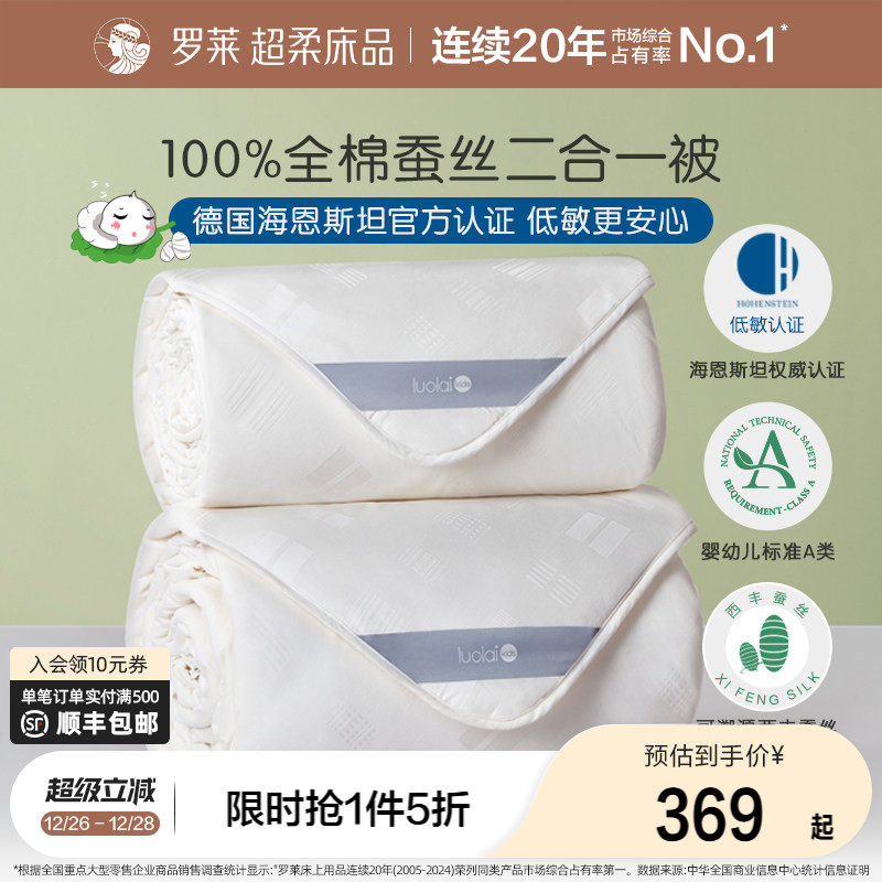 罗莱儿童100%蚕丝被冬被全棉被子空调被子母被春秋被二合一被芯