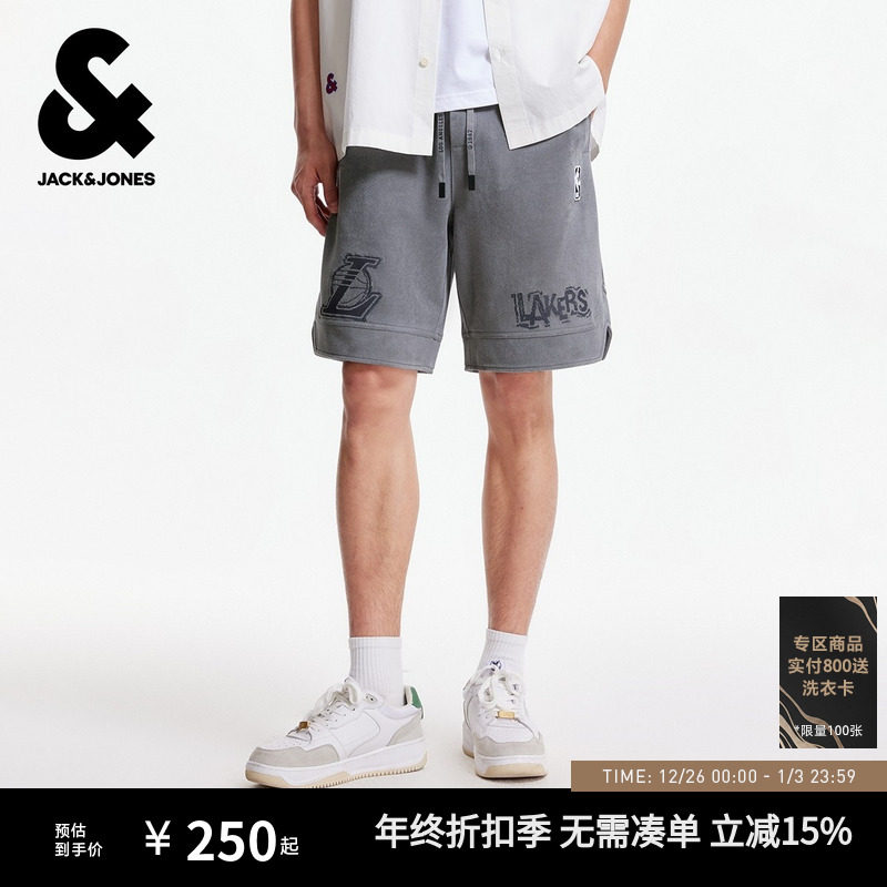 杰克琼斯NBA联名秋季男装短裤湖人队字母刺绣潮时尚运动篮球裤子