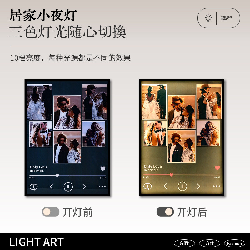 定制照片相框蓝牙音箱复古壁画音响灯光画框生日礼物女生送男朋友