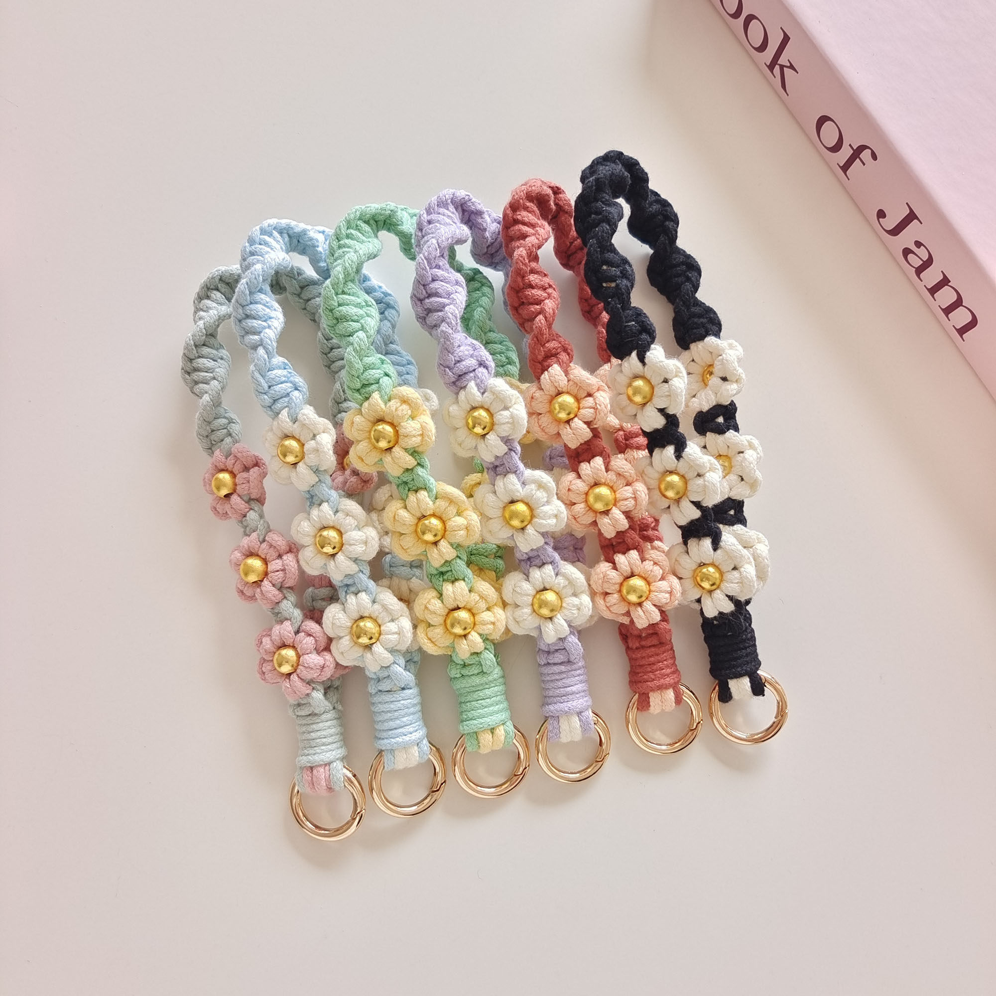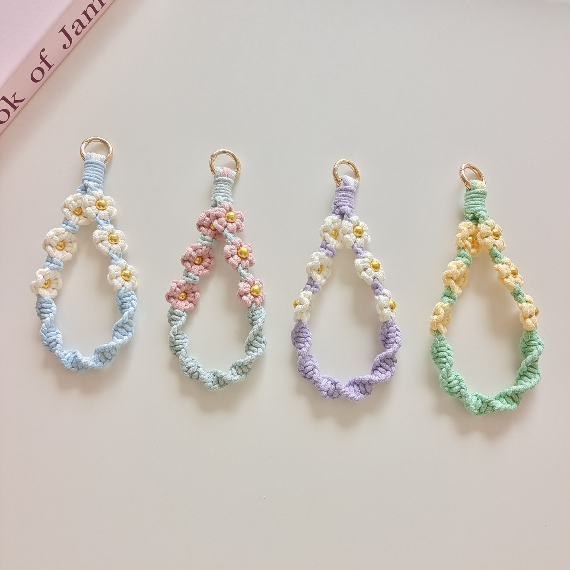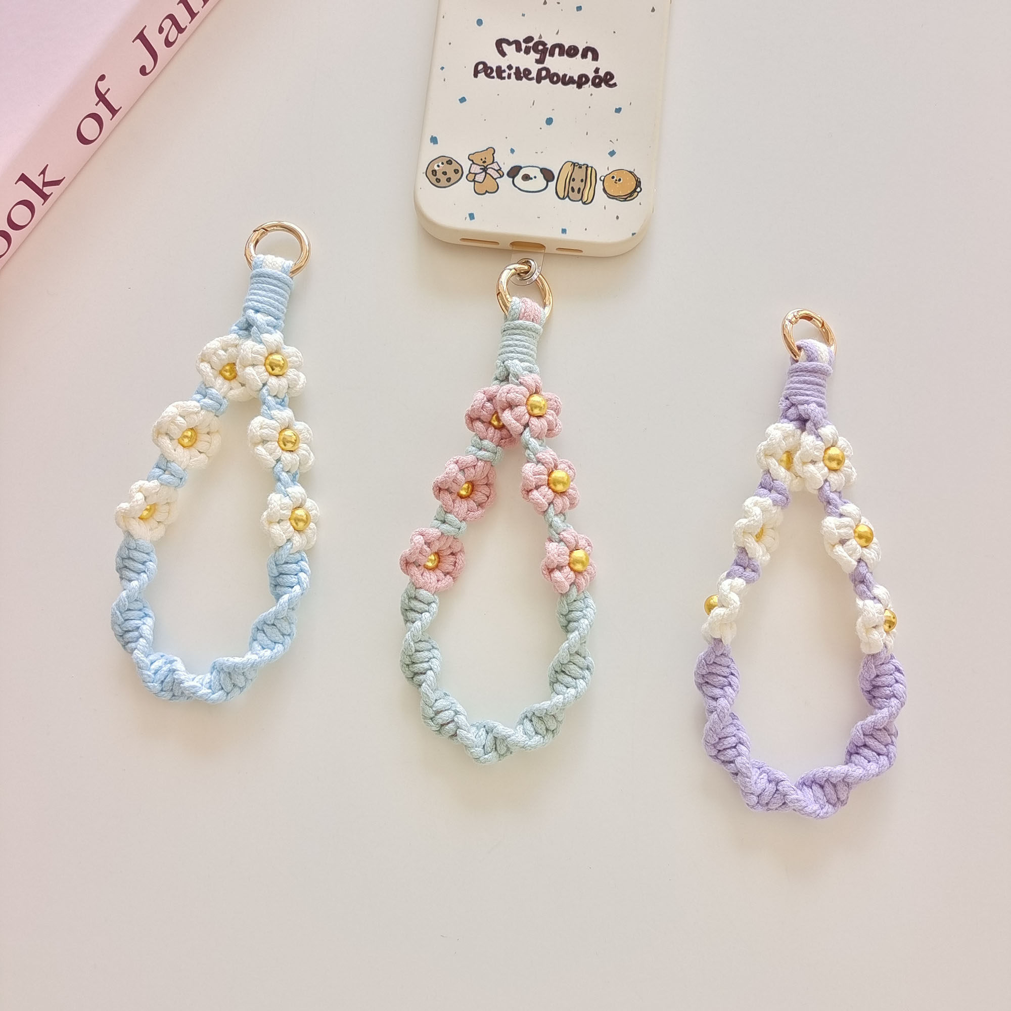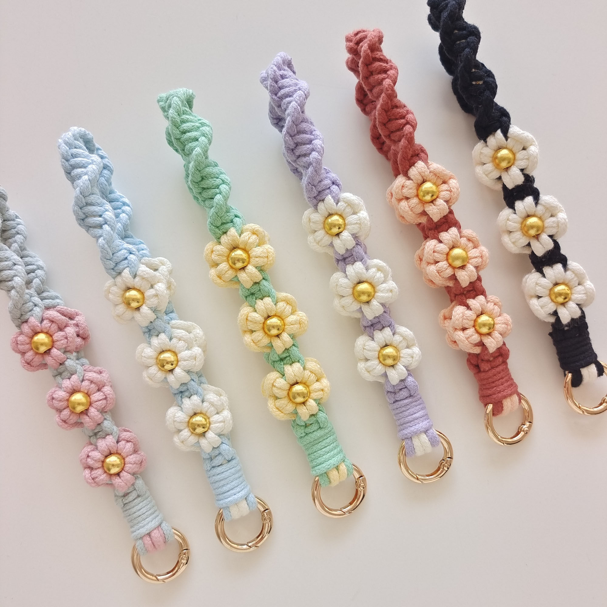 新品纯手工编织手机链小雏菊花朵手腕挂绳钥匙扣包包挂件文艺时尚