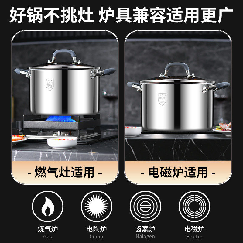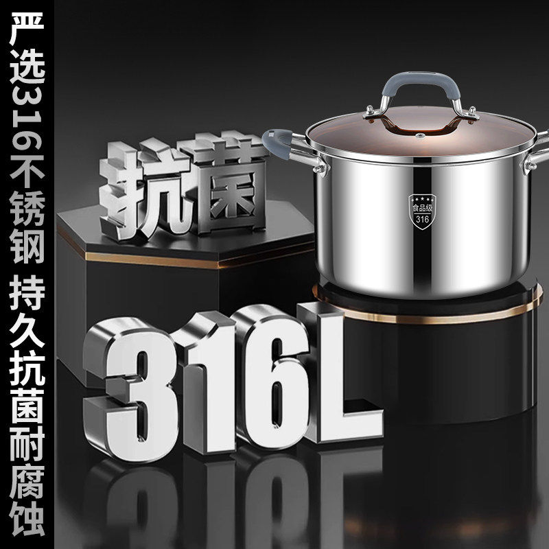 苏泊尔汤锅316不锈钢煮锅家用特厚电磁炉熬粥炖汤煮面热馒头蒸锅V