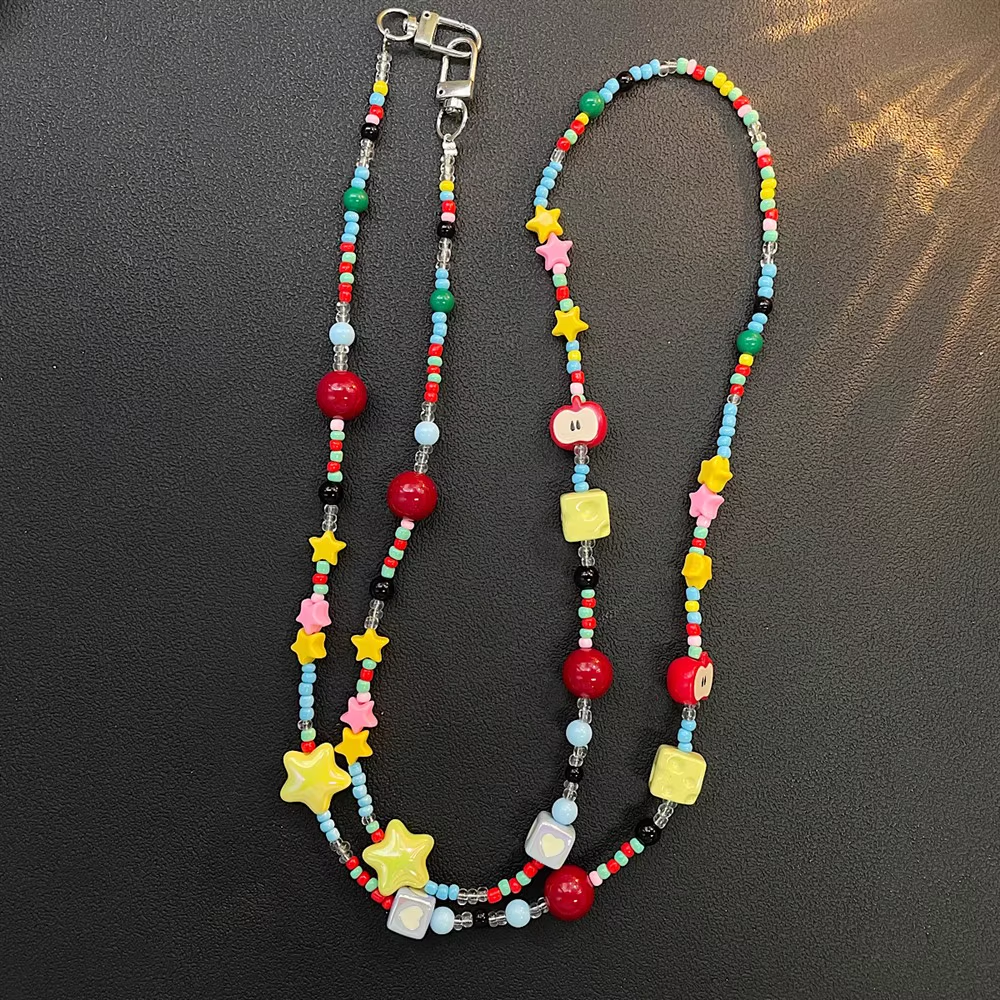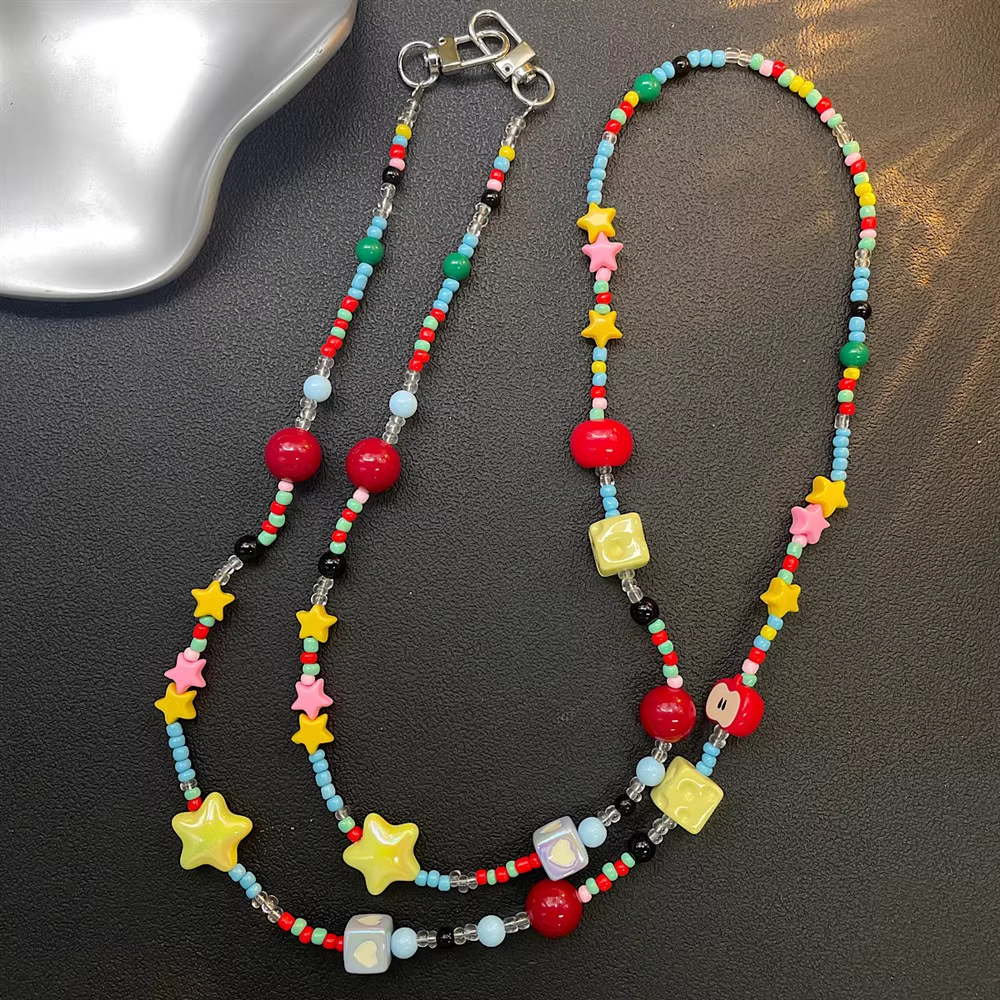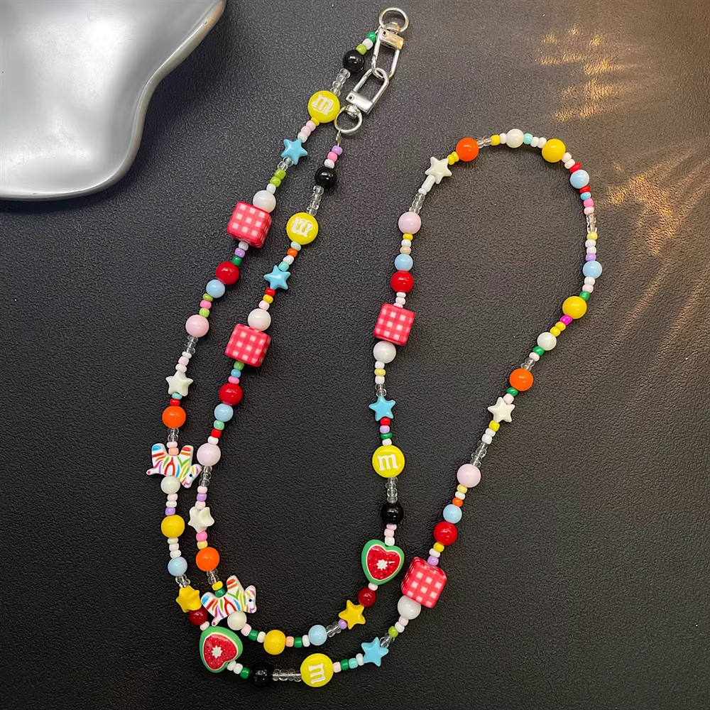彩色竹节珠子斜跨链少女链条挂脖挂绳链子肩带包链条斜挎链