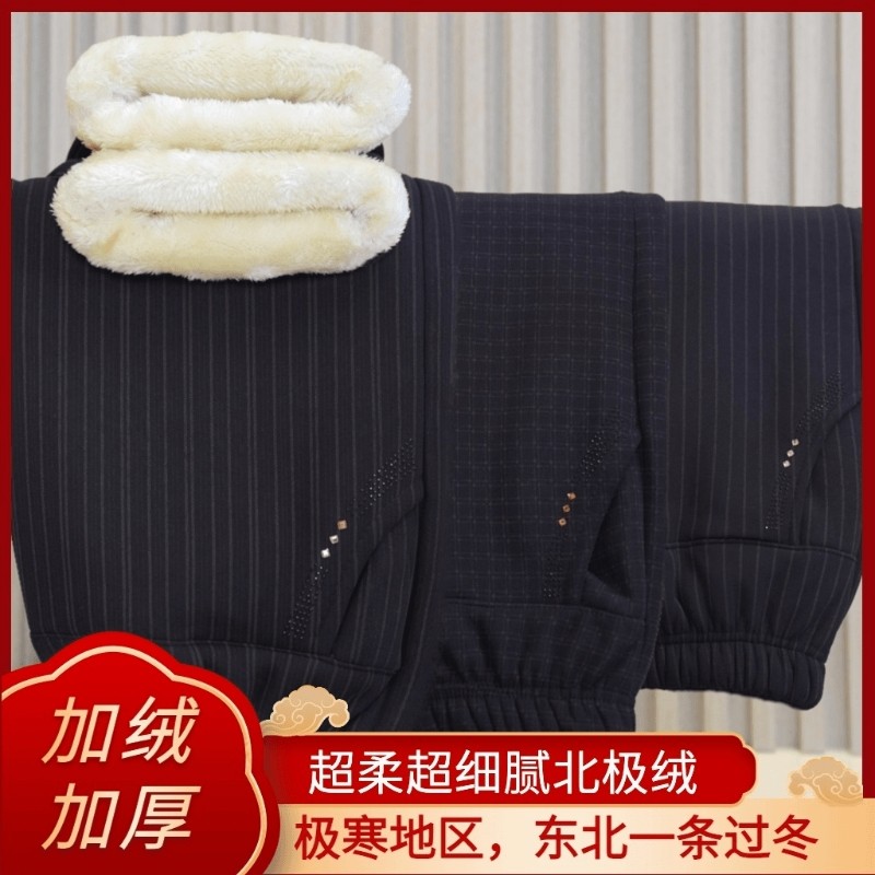 妈妈冬季加绒裤子加厚休闲裤秋冬大码中老年女外穿直筒裤保暖棉裤