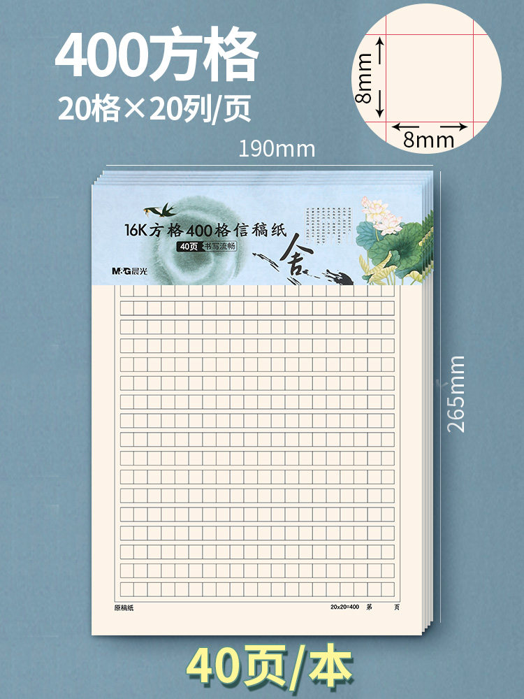 晨光方格草稿纸学生用300格400格500格草稿本加厚护眼16k作文稿纸