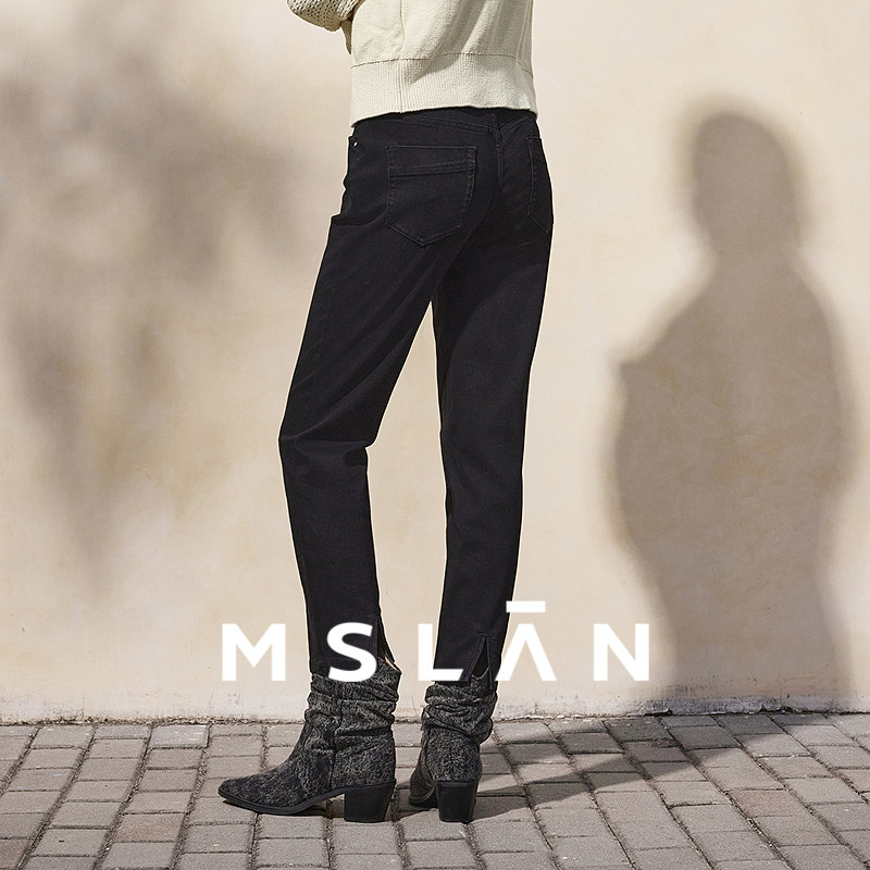 弹力打底/MSLAN26春紧身铅笔黑裤小脚裤通勤黑色外穿开衩牛仔裤女