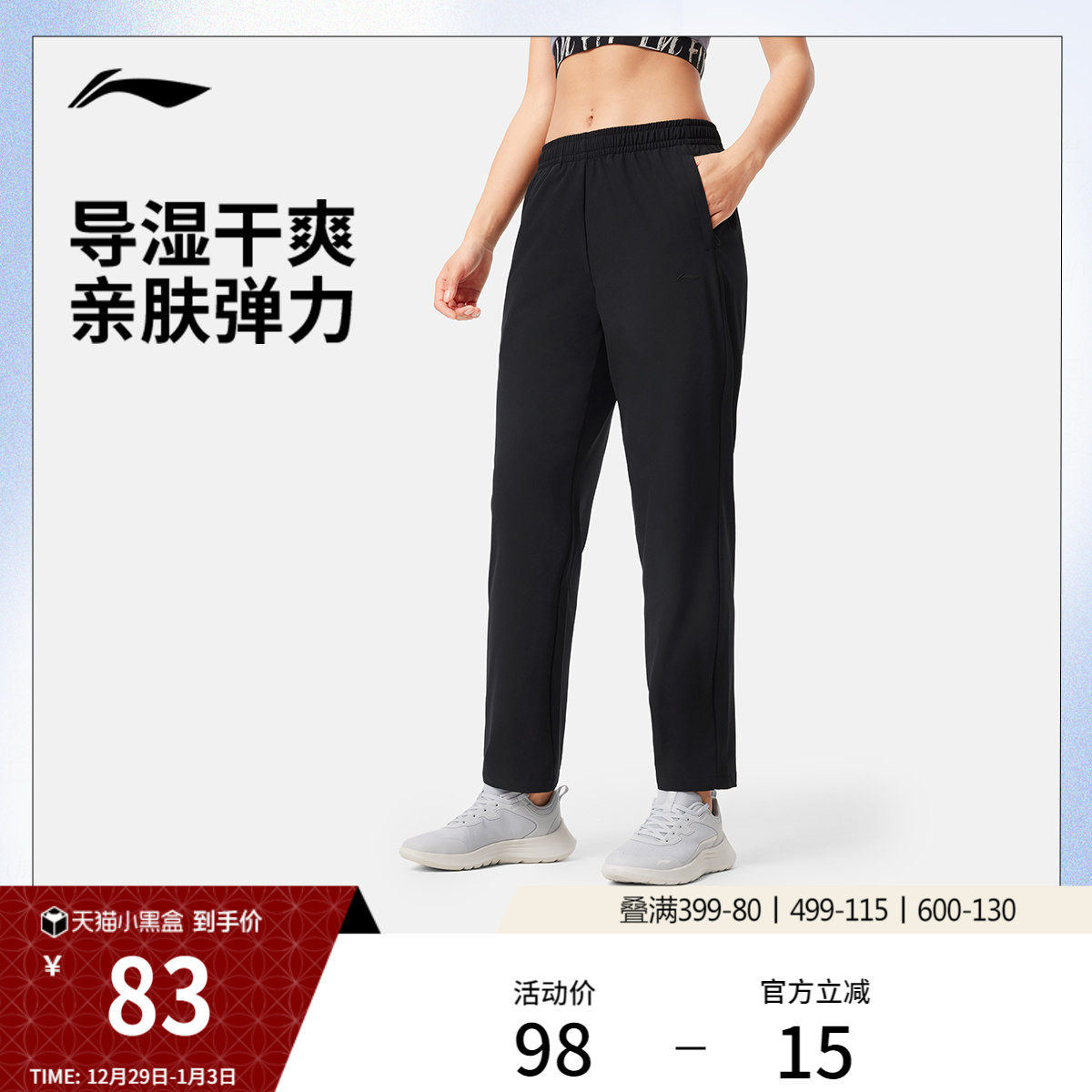 李宁运动裤女士训练黑色裤子健身跑步长裤弹力透气梭织运动速干裤