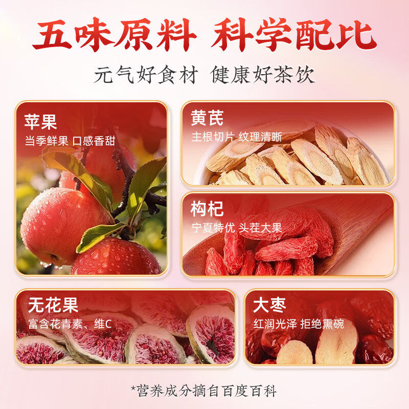 苹果黄芪水麦冬红枣枸杞素颜水女士人调理补气血美容养颜养生茶包