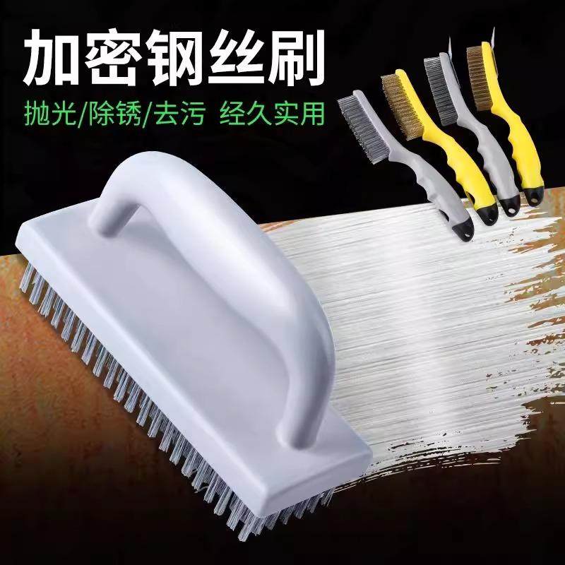 卫生间专用钢丝刷不锈钢长柄款除锈神器小钢刷多功能清洁刷子加密