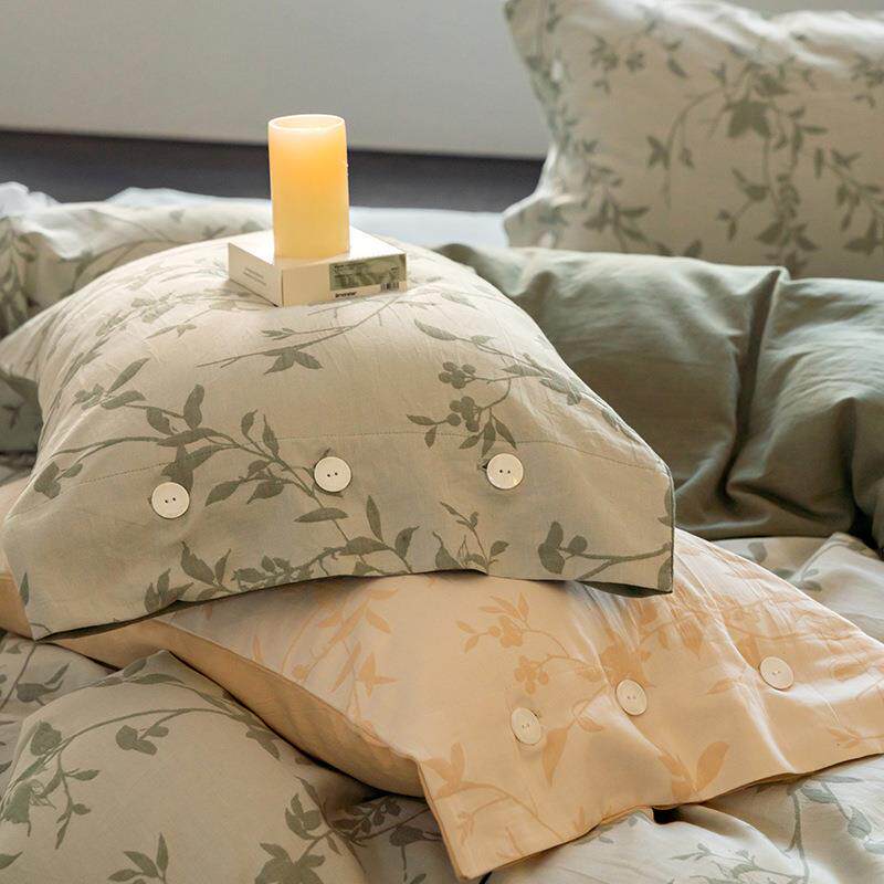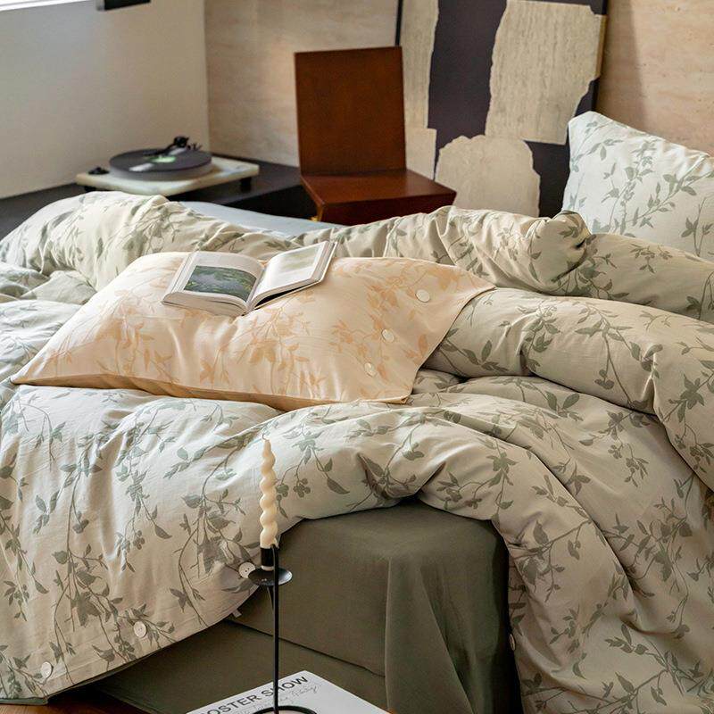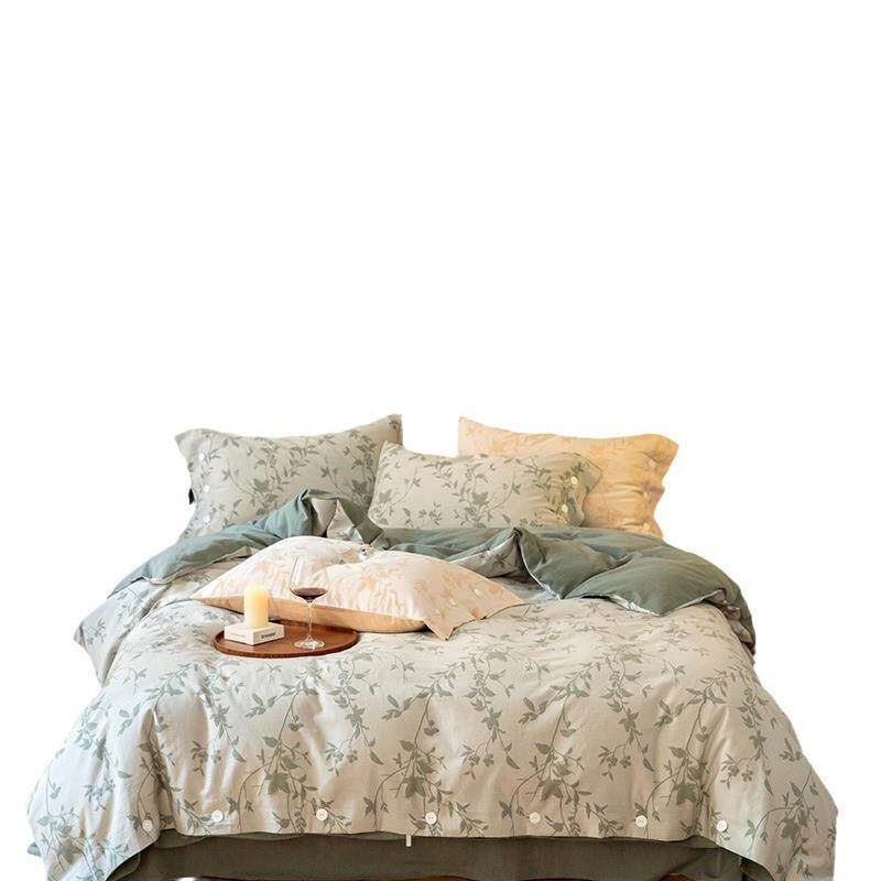 A类全棉60支双层立体提花四件套色水洗织纯棉简约纽扣款被套床单