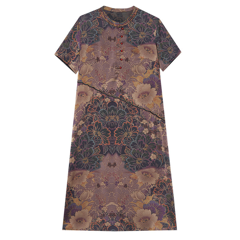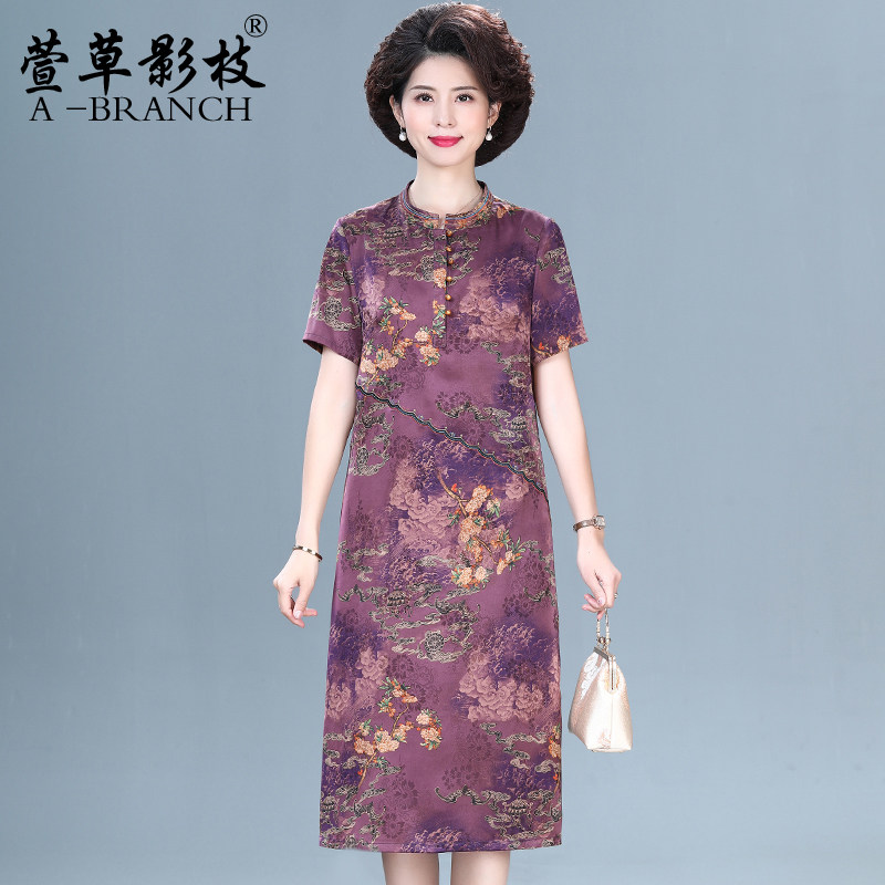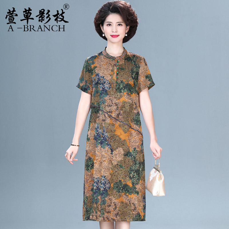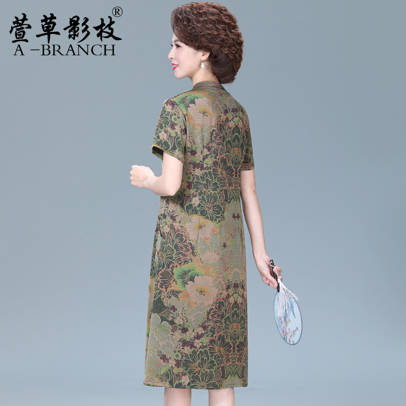 妈妈夏装连衣裙高贵洋气短袖中老年人女气质阔太太时尚裙子中长款
