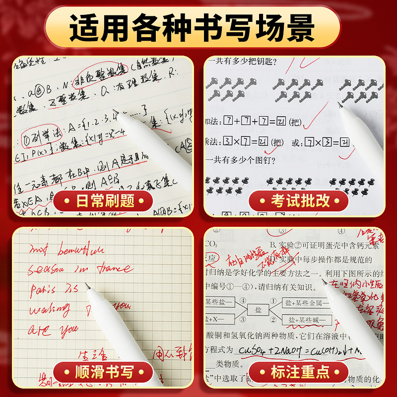 一木林汉玉白红笔按动中性笔学生老师批改作业专用高颜值刷题笔速干CS笔头学生水笔红色黑笔签字笔圆珠笔笔芯