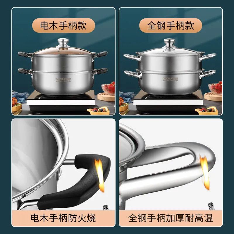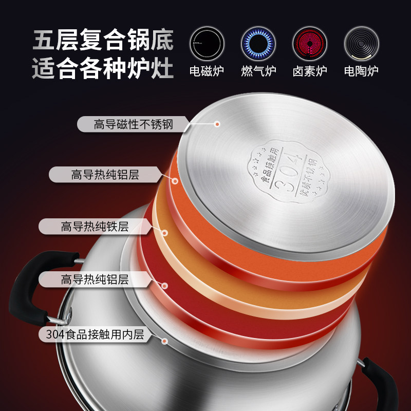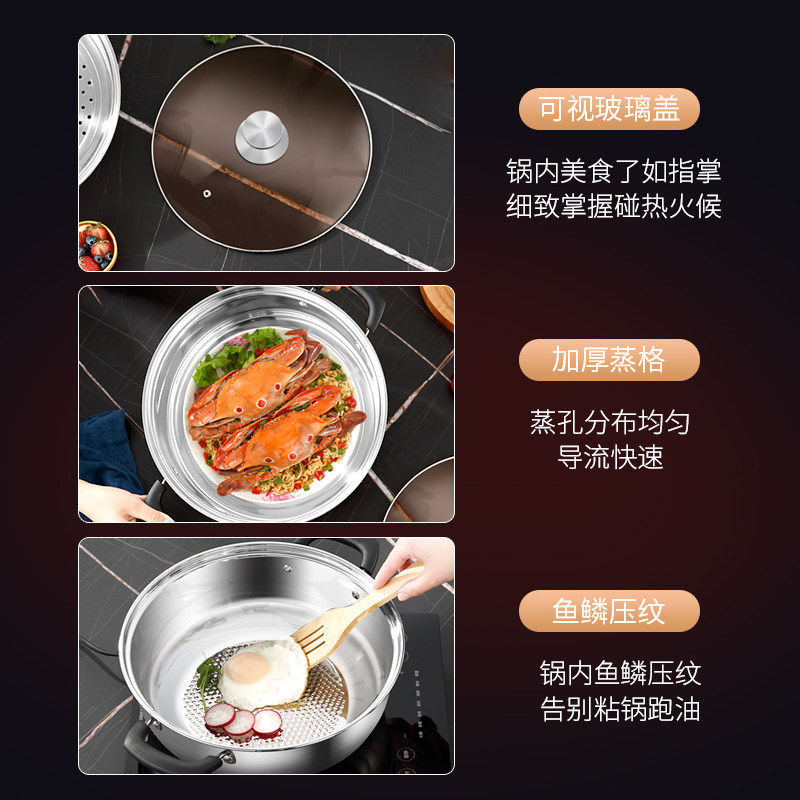 康巴赫款蒸锅加厚304不锈钢家用三层蒸笼屉五层底蒸鱼馒头燃气灶