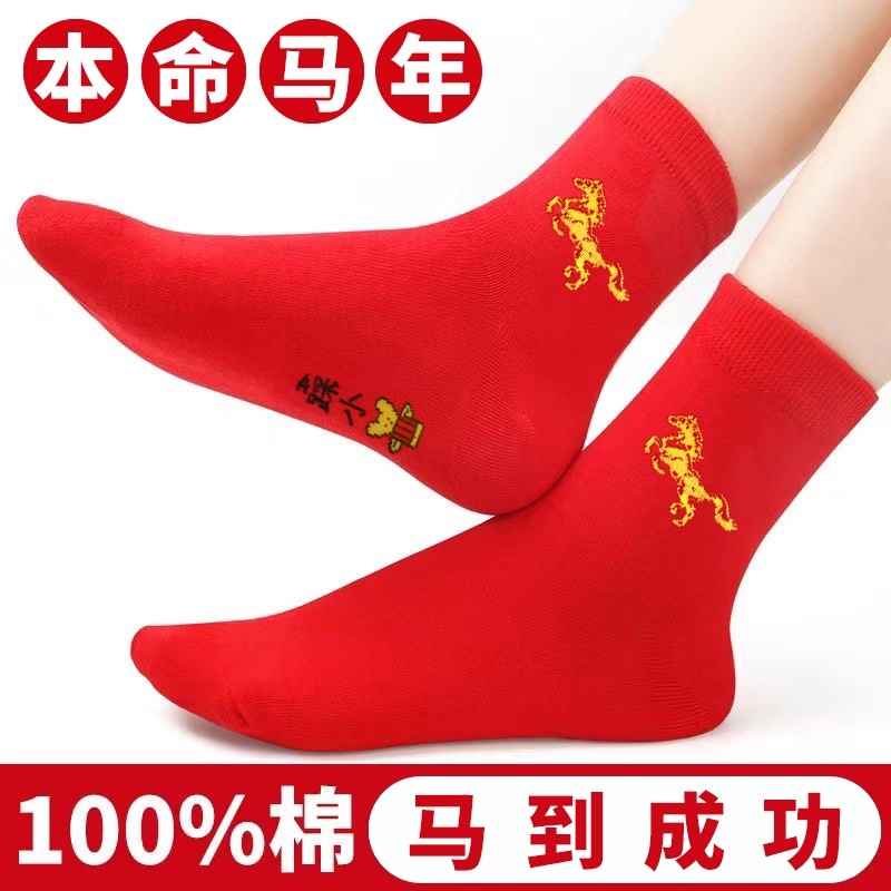 热卖本命年袜子红男女长筒棉袜大红袜子红色结婚袜马年长绒棉脚底