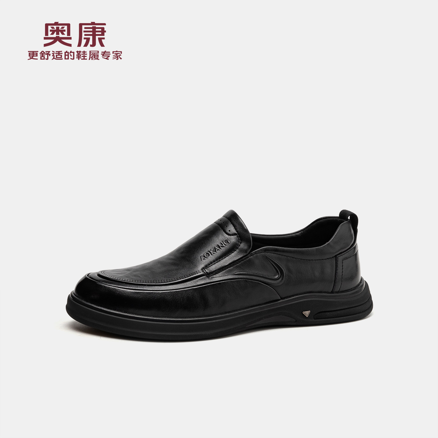 奥康官方男鞋春秋季真皮商务休闲皮鞋时尚套脚平底脚蹬舒适爸爸鞋