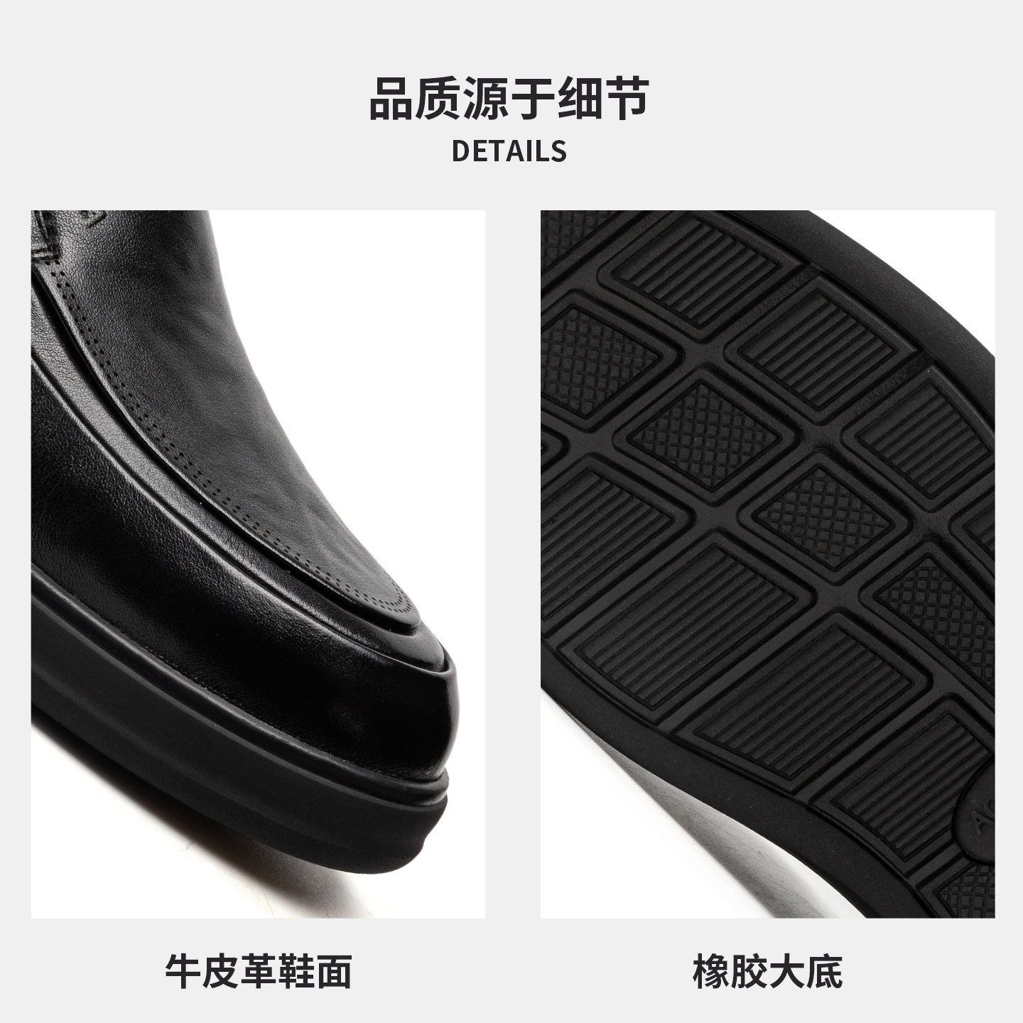 老人头男鞋冬季皮鞋男士中年商务休闲皮鞋真皮加绒软底舒适爸爸鞋