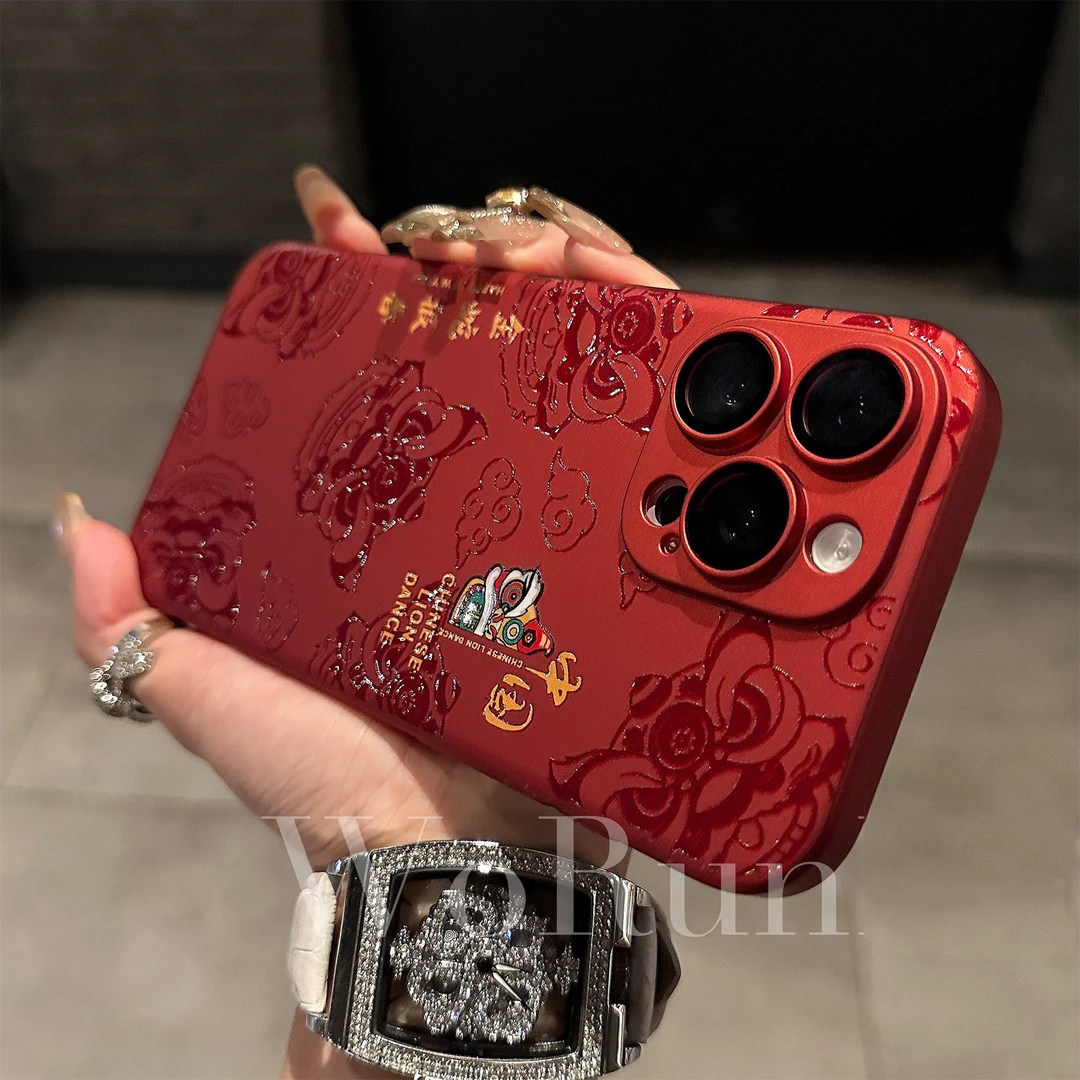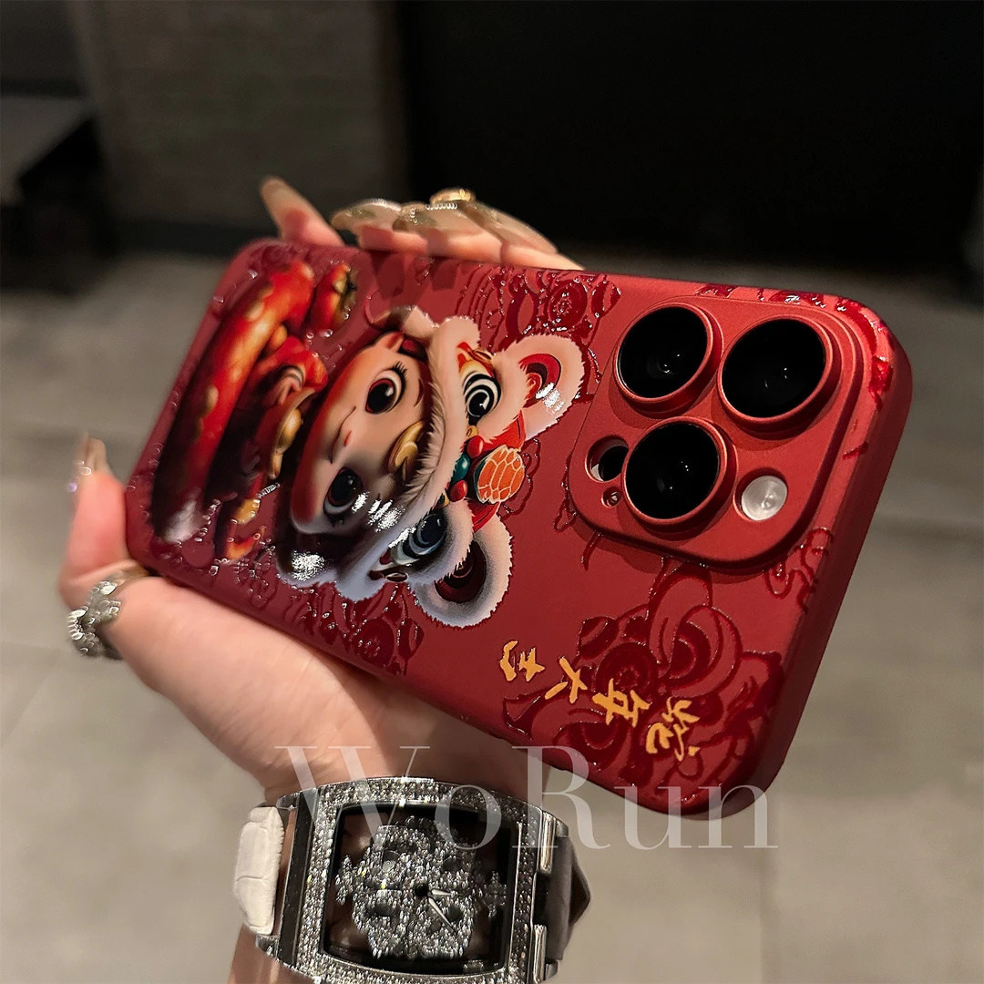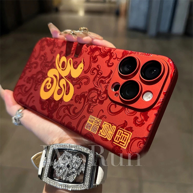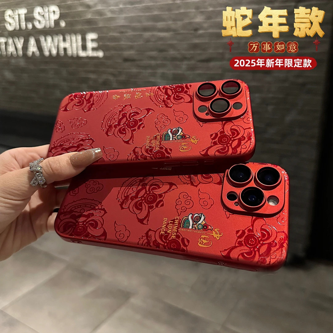 蛇年2025新年款發字陀螺支架适用苹果16promax手机壳新款iphone15国潮国风红色14自带镜头膜外壳13/12保护套