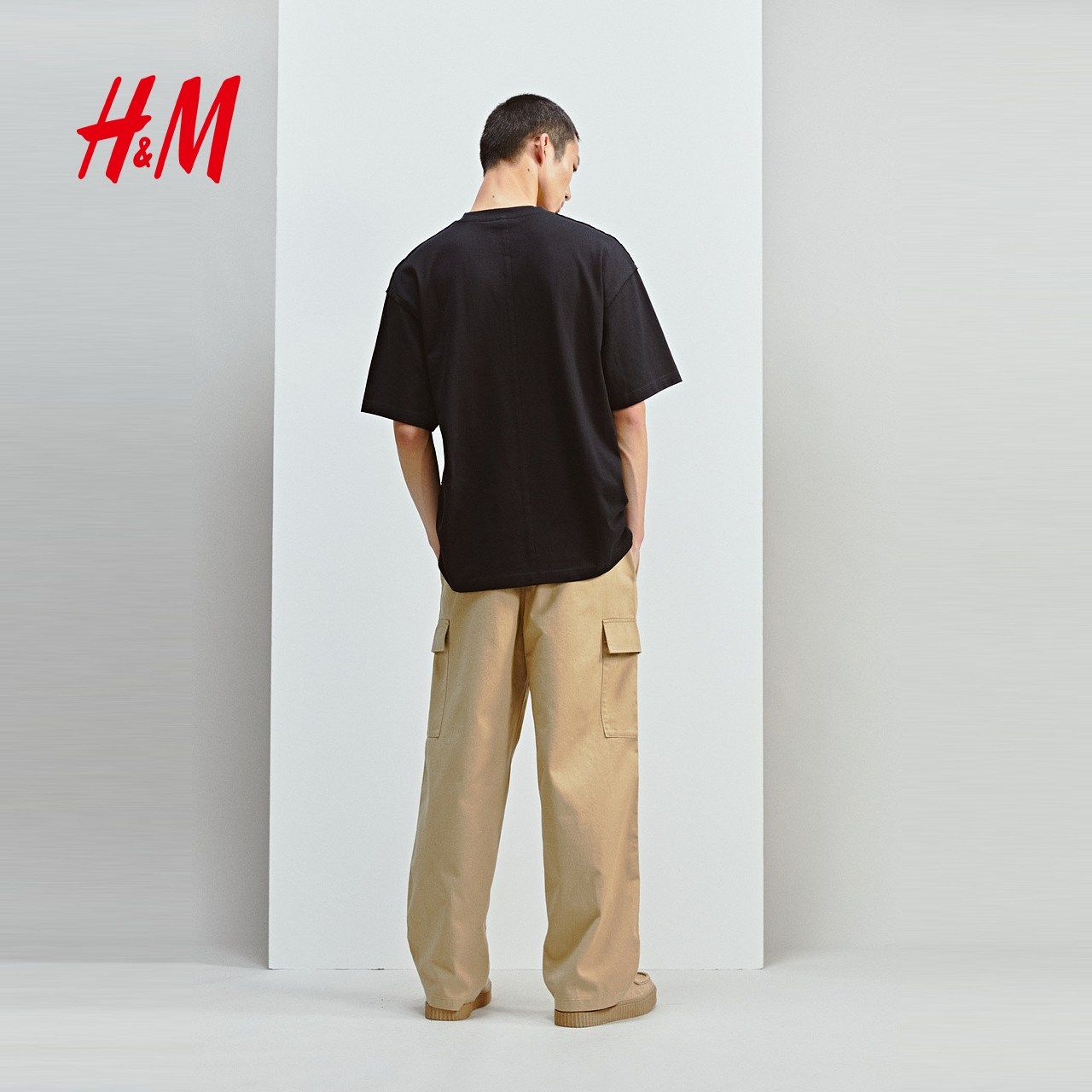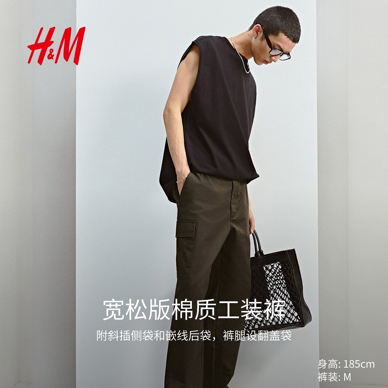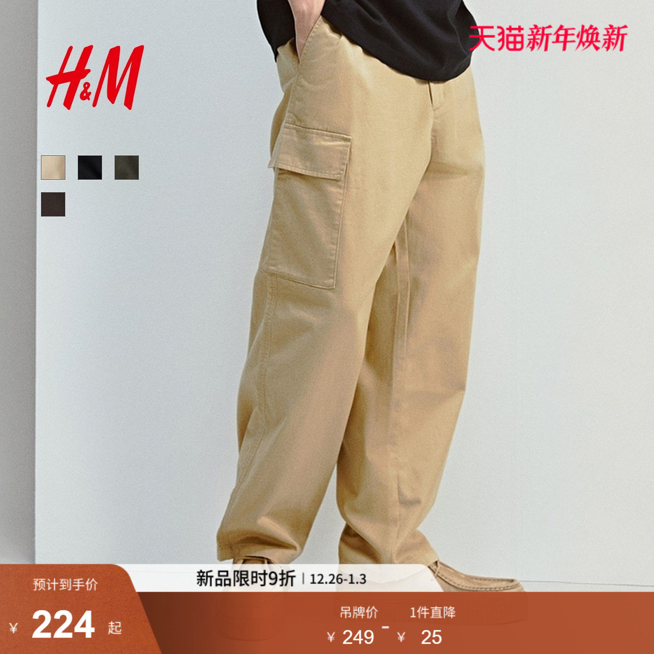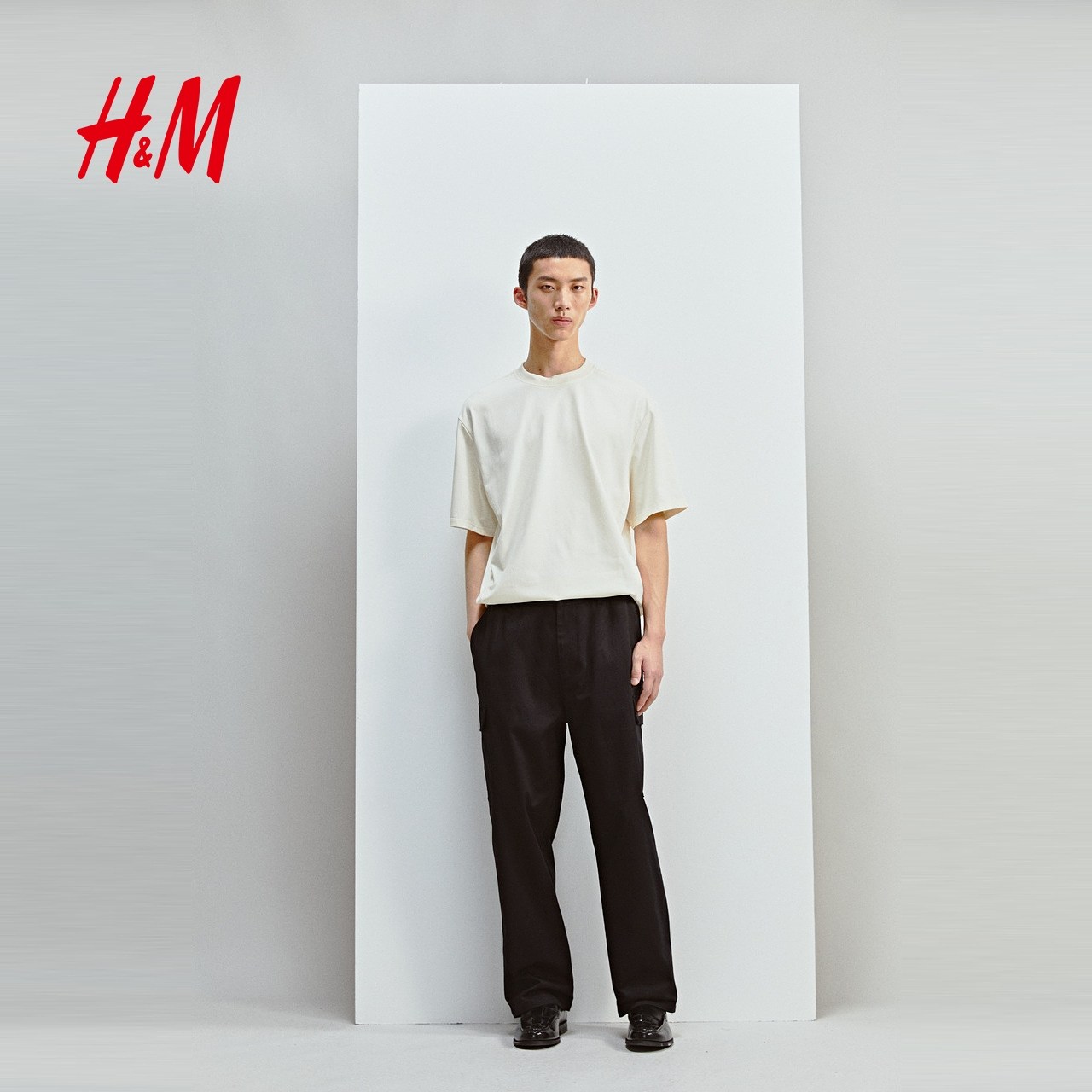 HM男装休闲裤2025新款宽松通勤休闲直筒美式长裤工装裤1294219