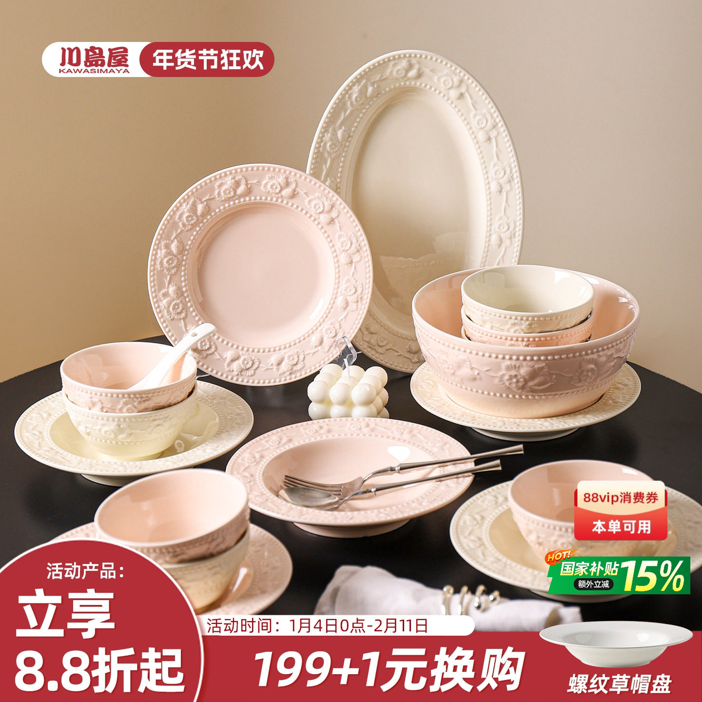 川岛屋法式浮雕餐具套装碗盘碗碟家用乔迁新居搬新家结婚新婚礼物