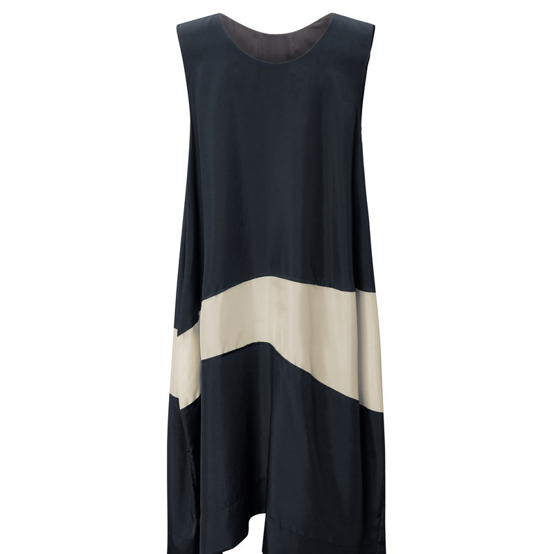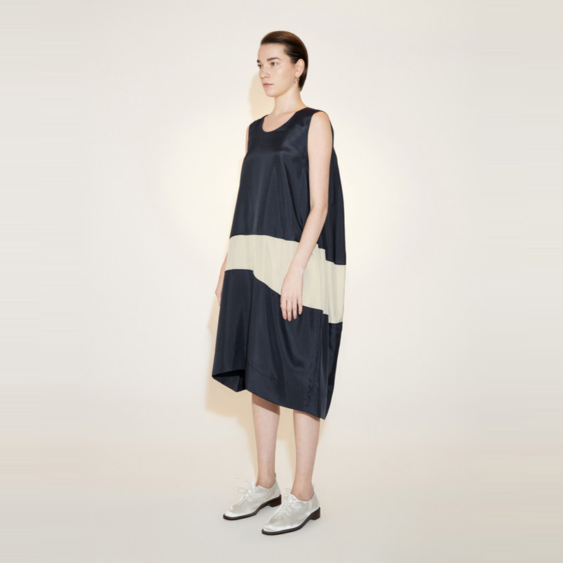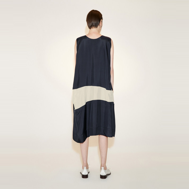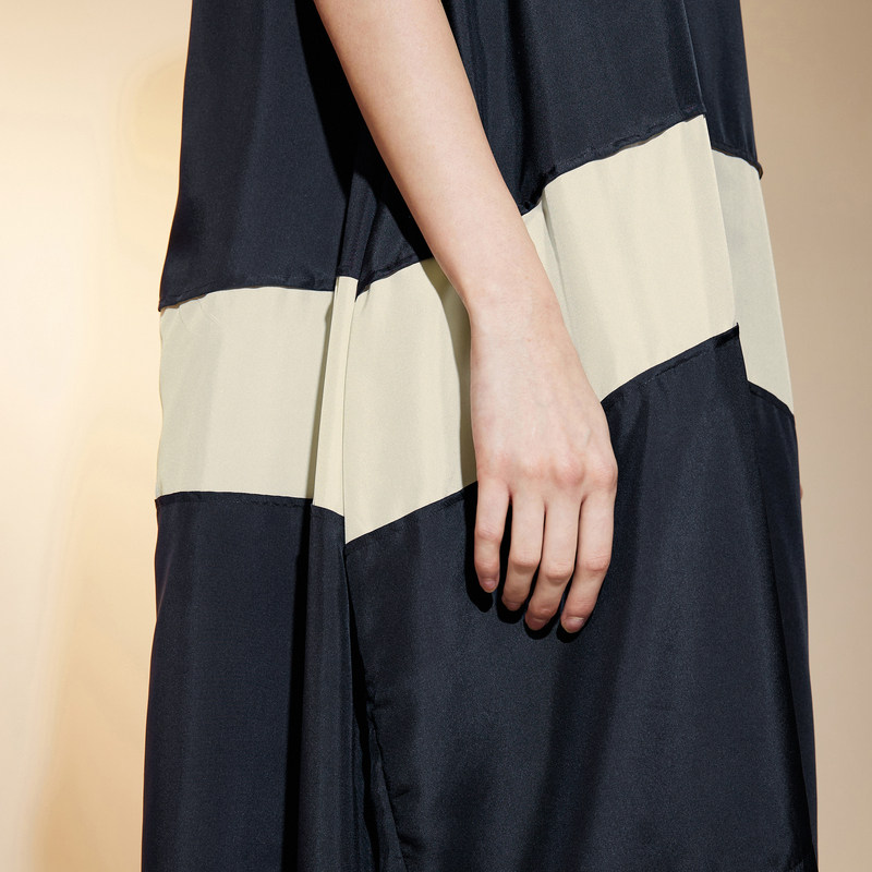 LESS夏季桑蚕真丝裙子女简约休闲宽松撞色无袖连衣裙2N6G14090