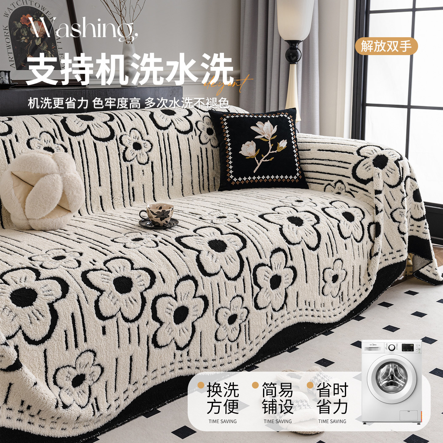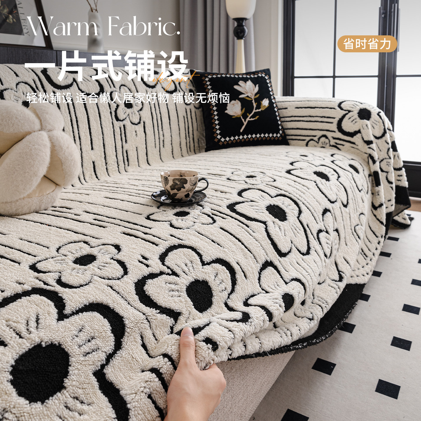 毛绒沙发盖布秋冬加厚防滑沙发巾轻奢高级感一片式全包套罩毯全盖