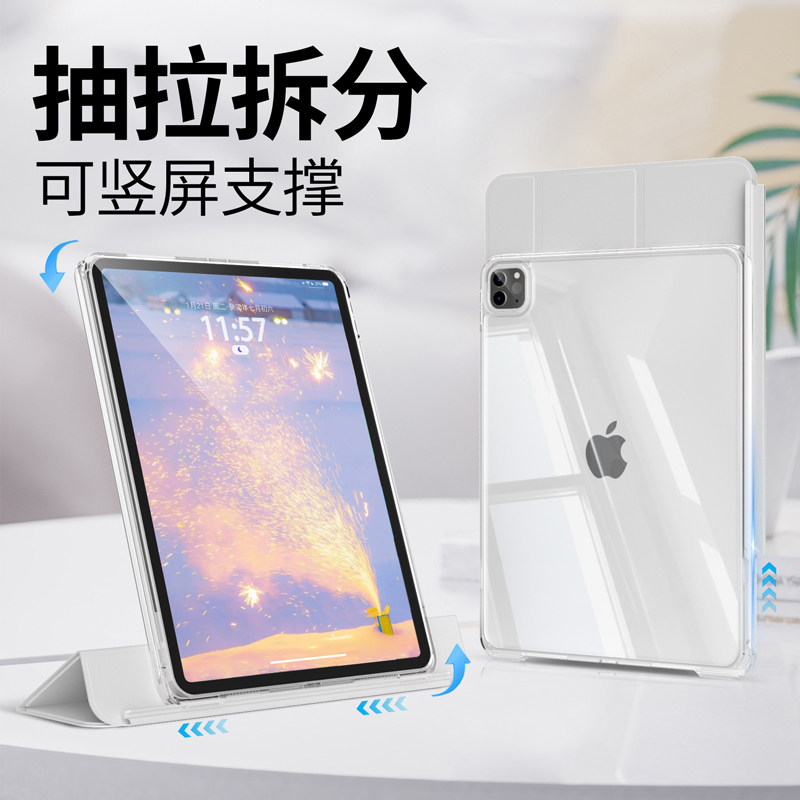 抽拉拆分ipadair6保护套ipadpro11寸带笔槽2024适用苹果平板ari5壳可拆卸mini7防弯2022分离第9代无笔槽pad10
