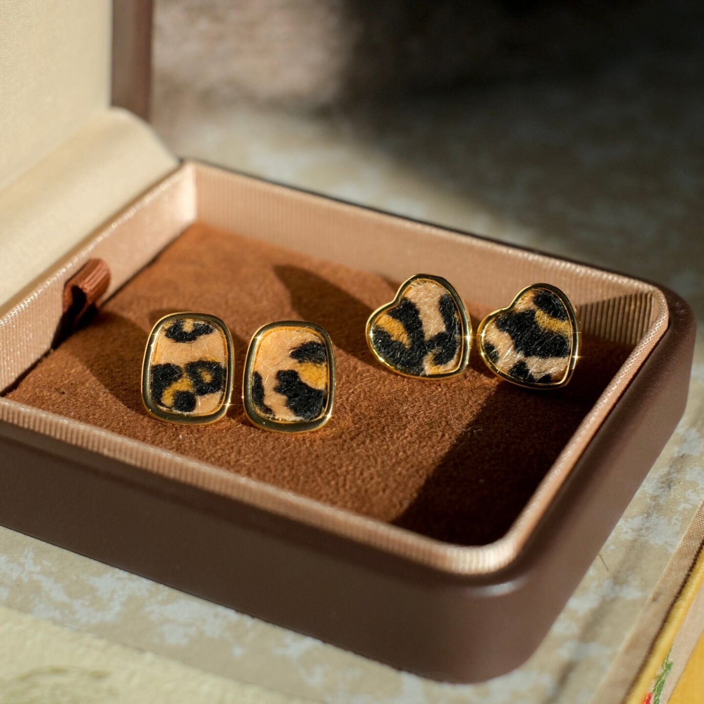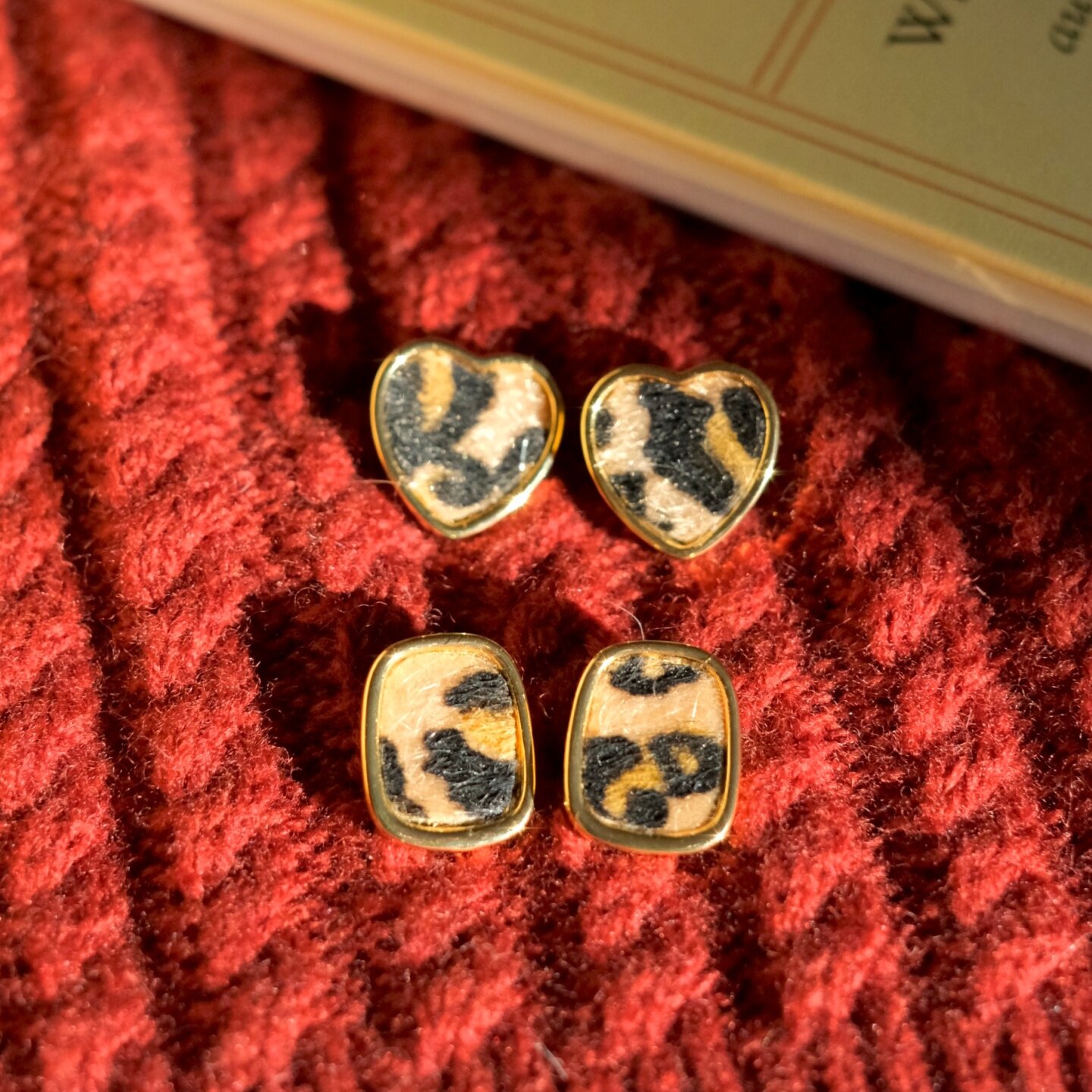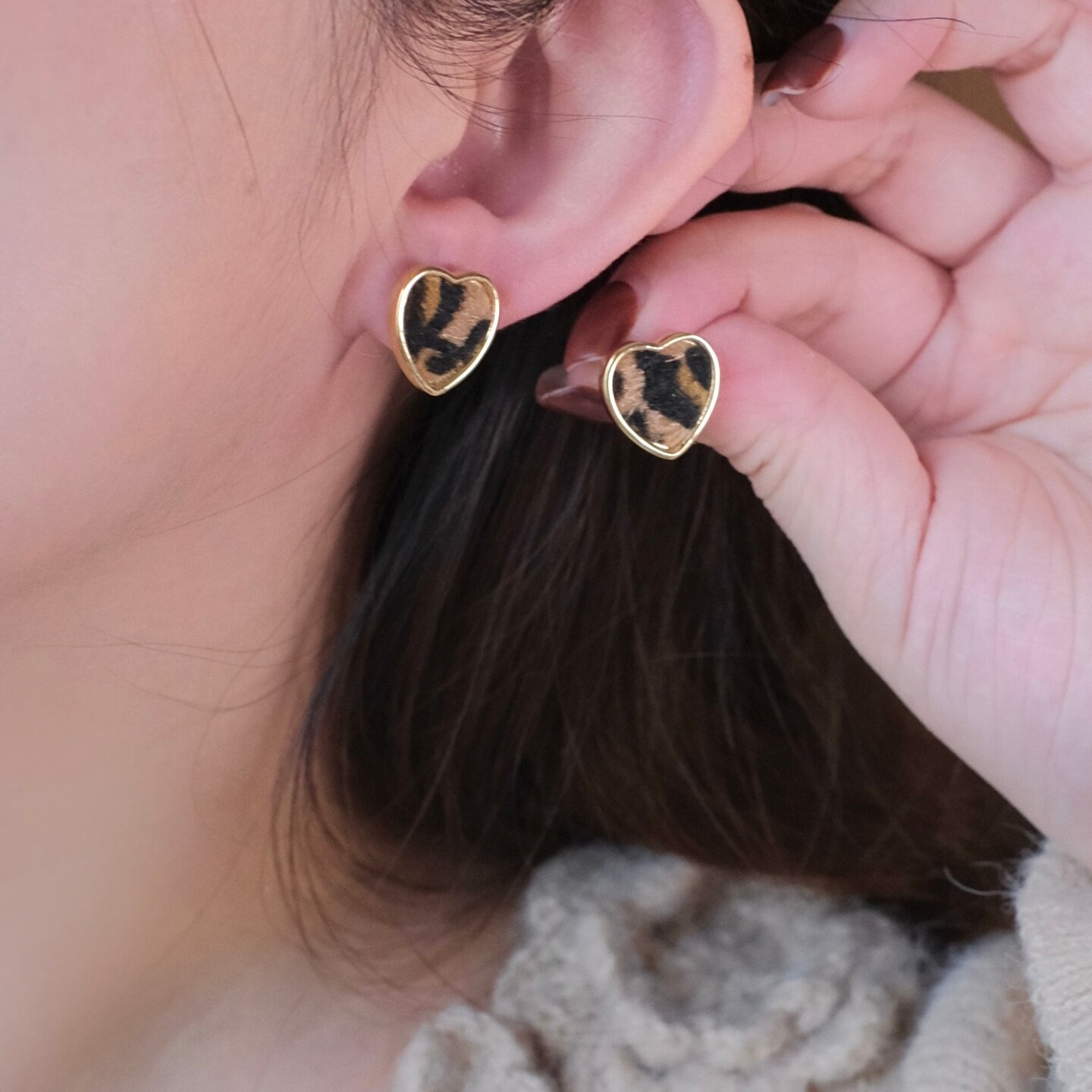 《原野小豹》复古秋冬简约小众少女几何爱心豹纹耳钉耳夹耳饰耳环