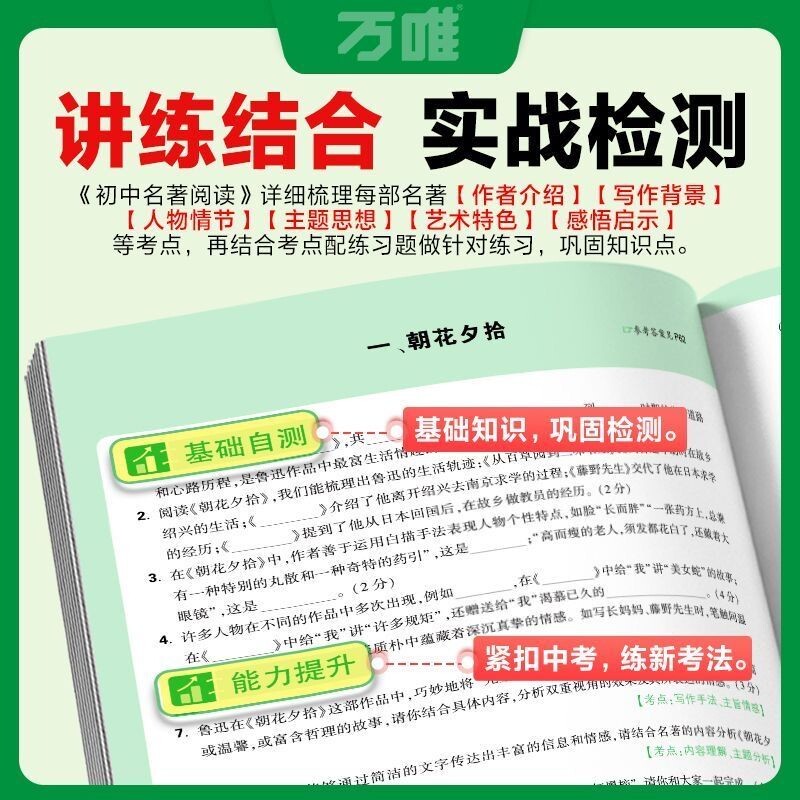 万唯初中名著阅读中考2026书籍教材必读十二本速读骆驼祥子朝花夕拾答题模板七八九年级上下册万唯考点知识点总结水浒传解读能力