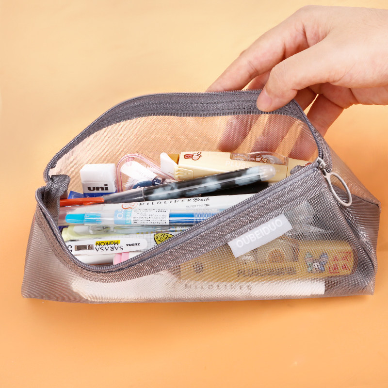 立体容量学生文具袋透明网纱笔袋高颜值简约女生中高考场专用收纳