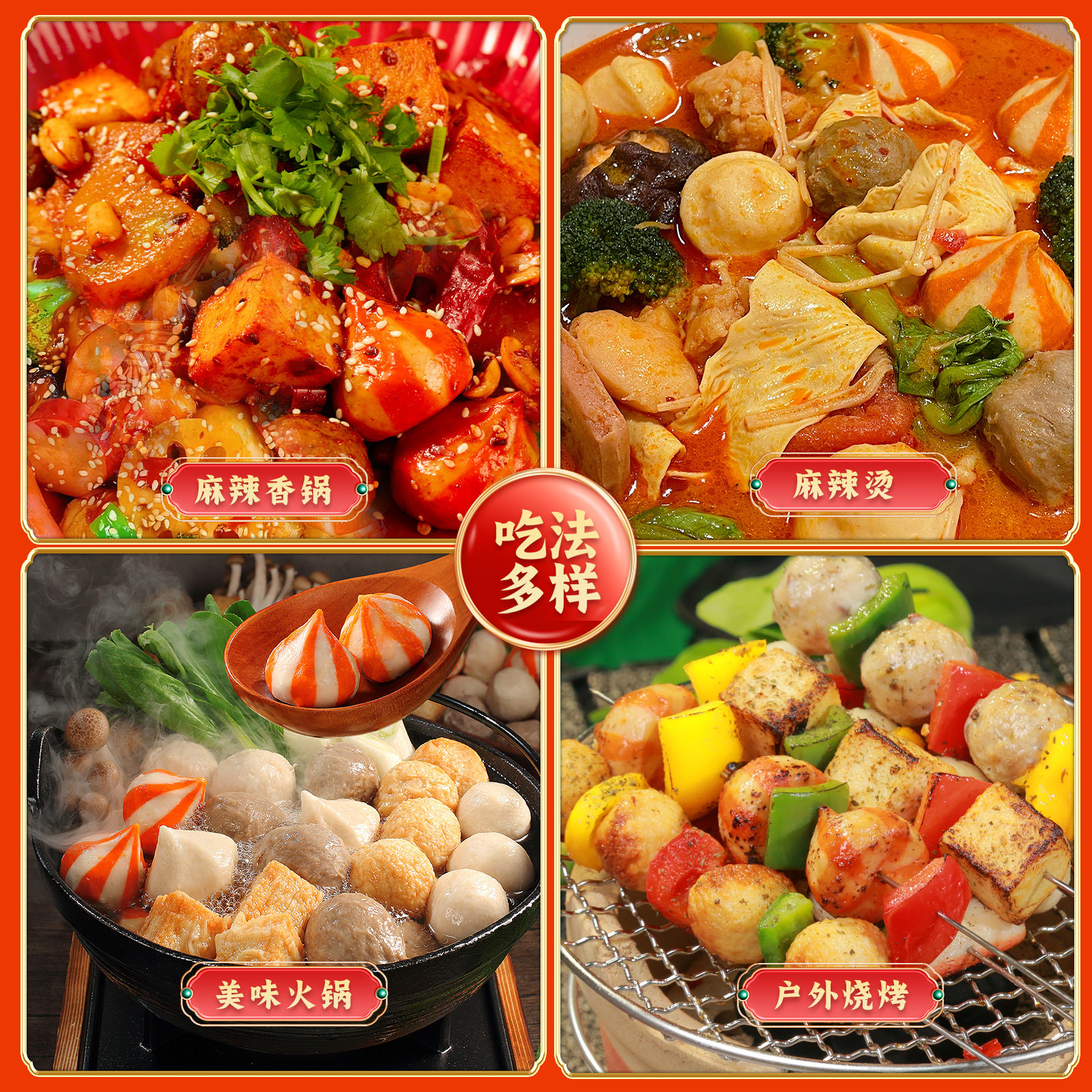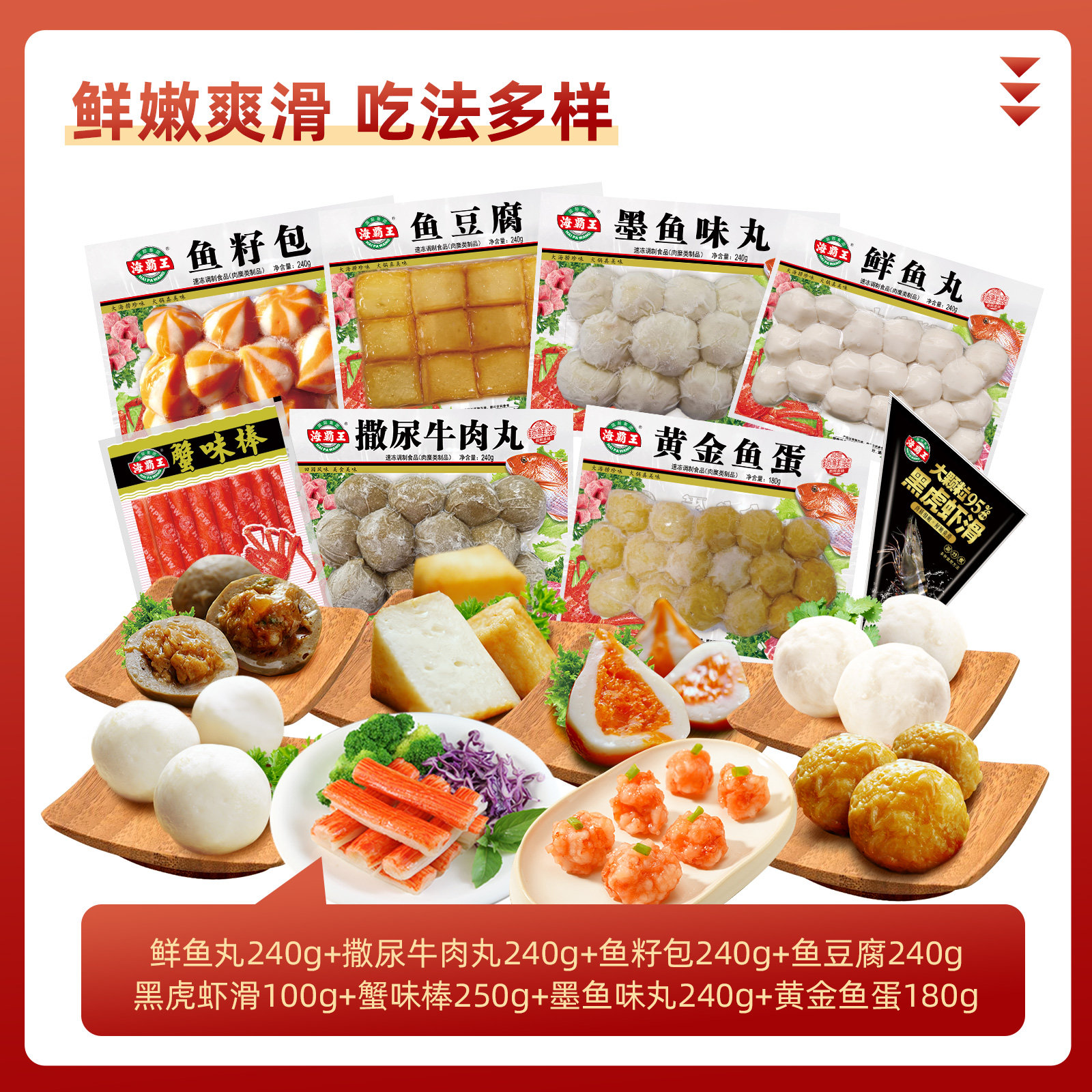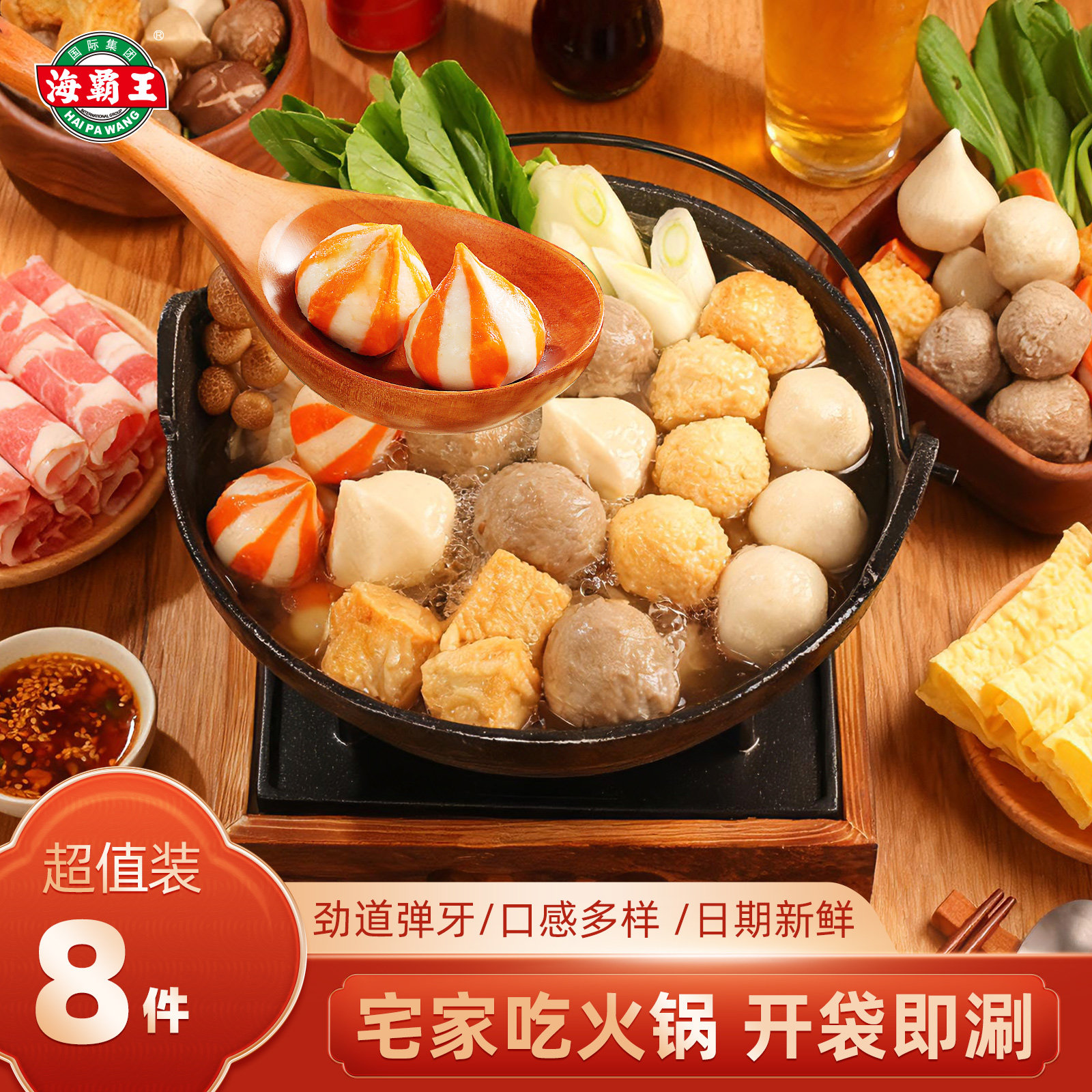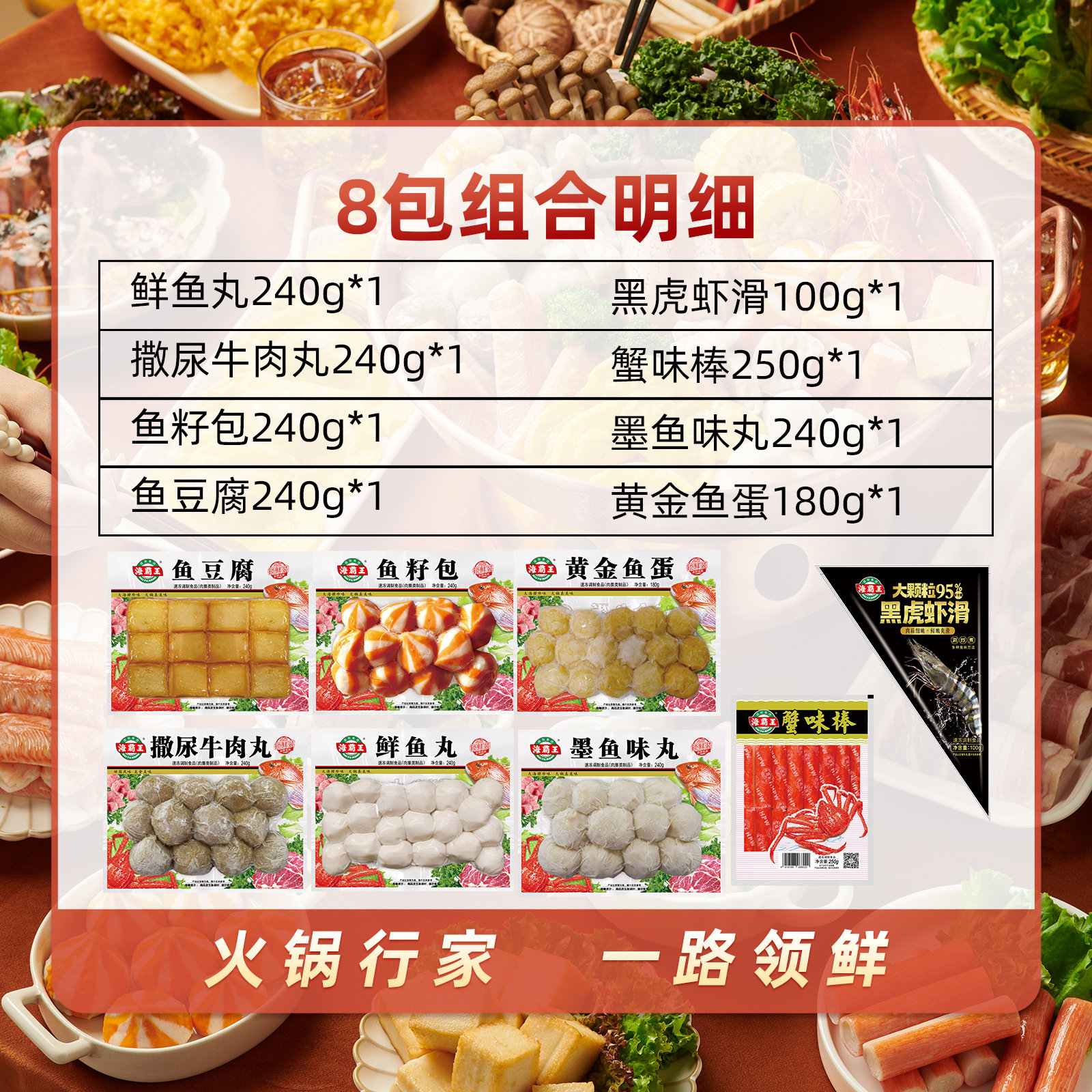 海霸王8件鱼籽包鱼豆腐蟹柳黑虎虾滑丸子火锅食材肉丸套餐年货节