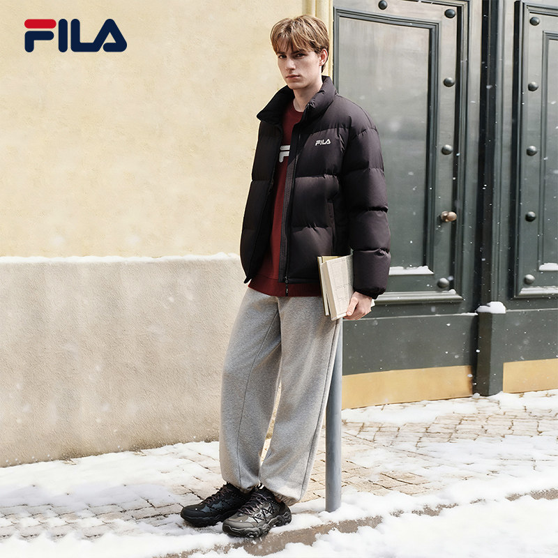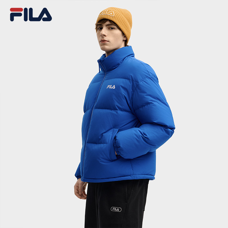 FILA 斐乐男士羽绒服2025冬季新款运动保暖立领外套蓝色上衣鸭绒