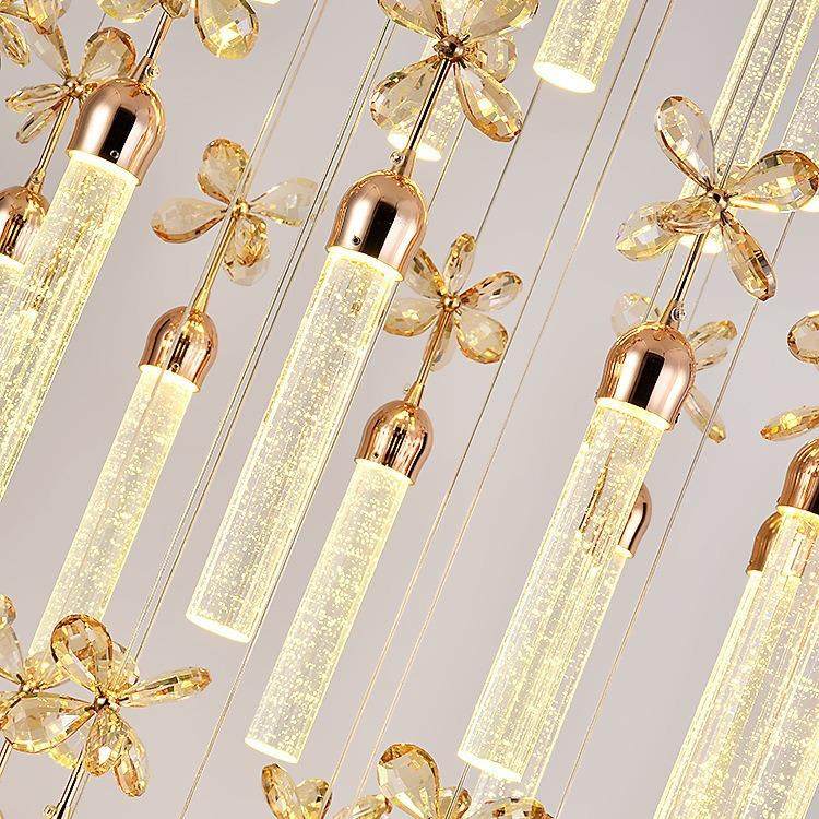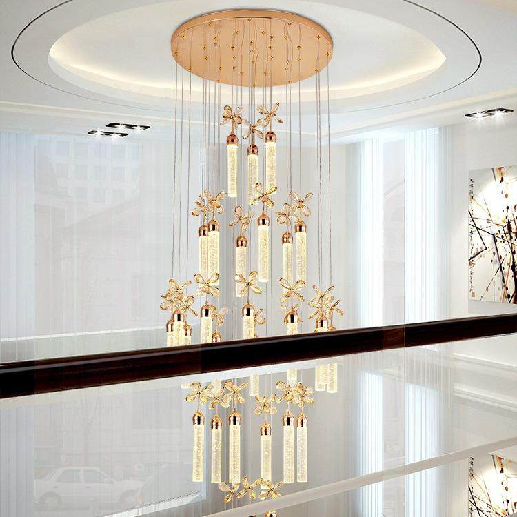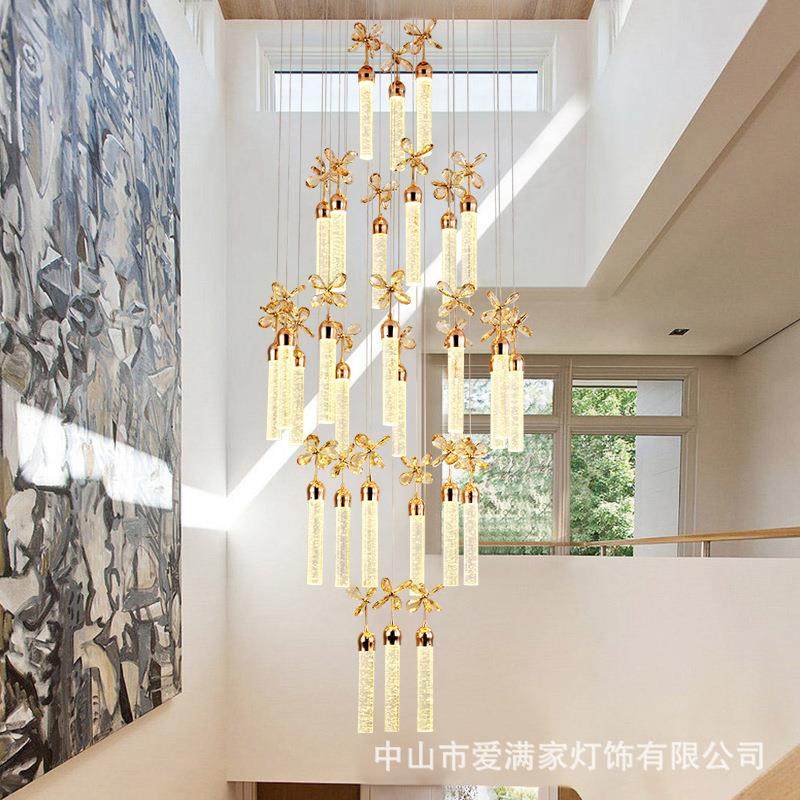 楼梯吊灯复式楼客厅中空楼中楼吊灯螺旋转楼梯间水晶柱吊灯简约灯