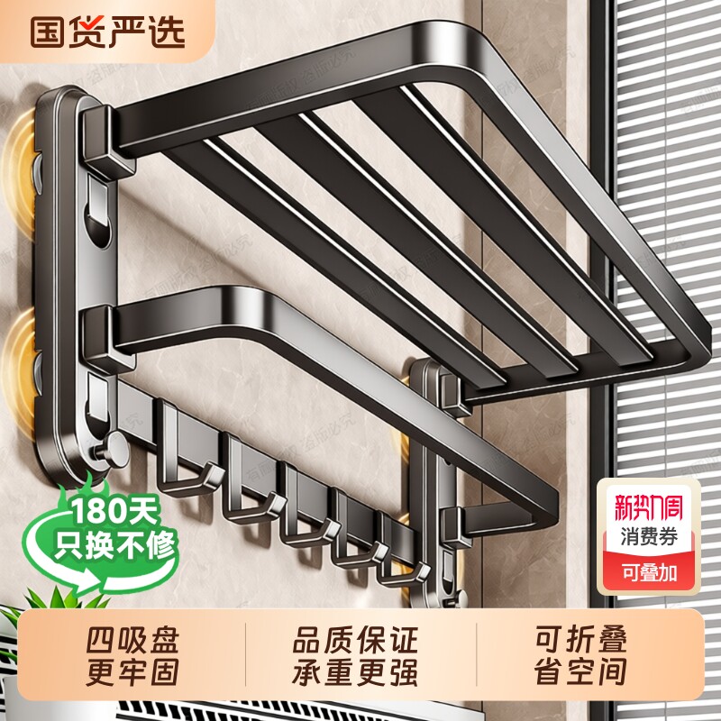 【谢霆锋推荐】佳帮手毛巾架免打孔浴室卫生间置物架一体折叠套装