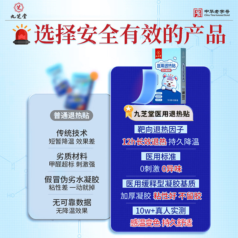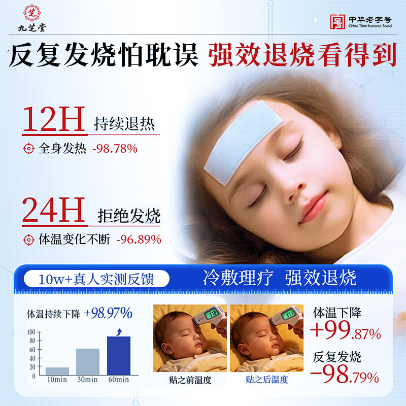九芝堂退热贴退烧贴婴幼儿童成人医用冷敷发烧感冒物理降温冰贴