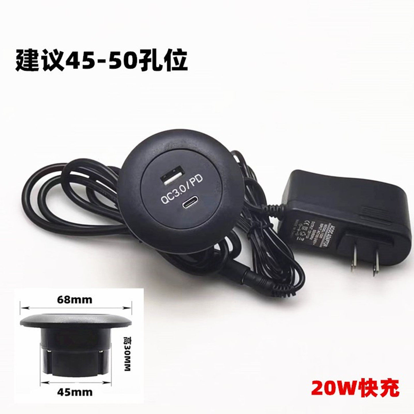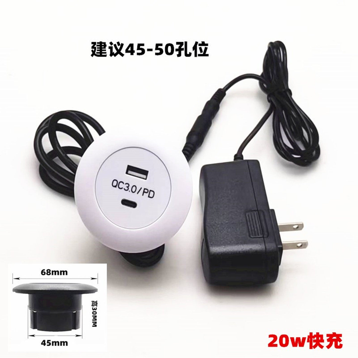 桌面嵌入式插座桌洞USB快充隐藏家具办公桌多功能床头Type-C插座