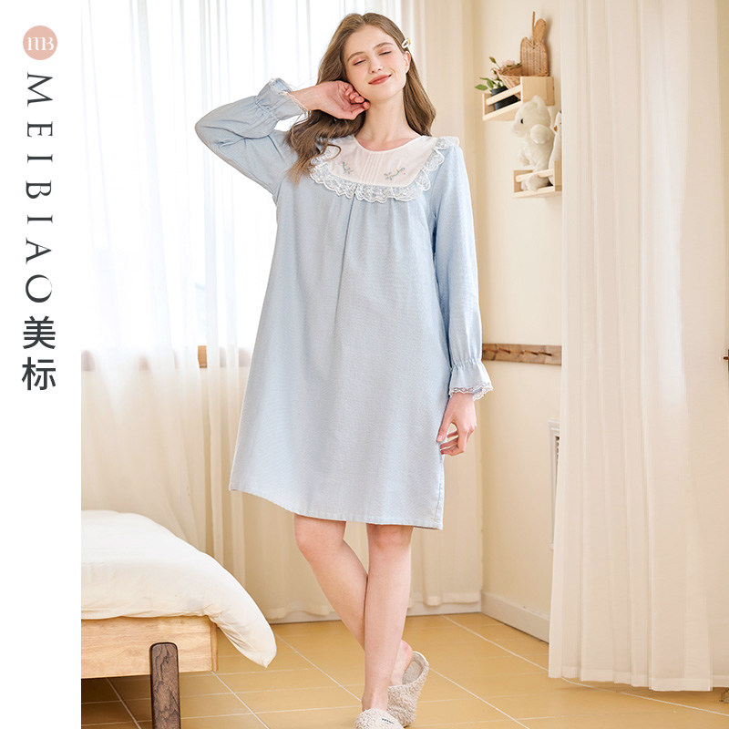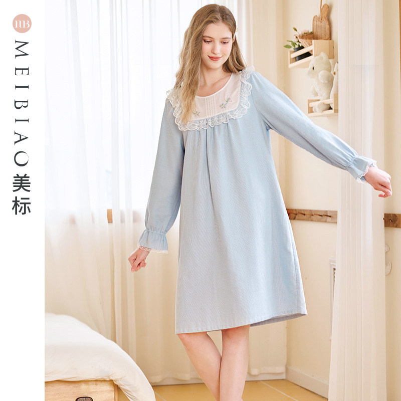 美标新款春秋宫廷风长袖纯棉睡裙女复古全棉睡衣可外穿家居服秋冬