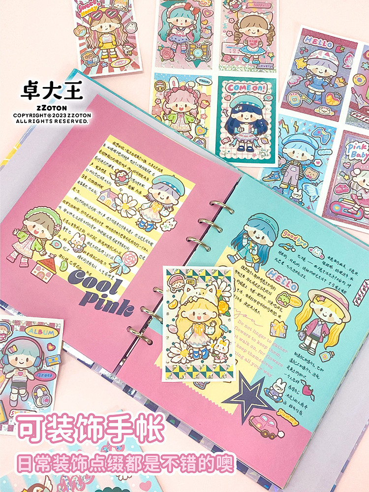 300张女孩贴纸手账卡通ins风PVC儿童粘贴咕卡手机壳透明防水贴画