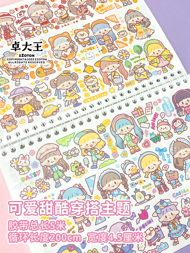 卓大王胶带小小阿卓彩虹穿搭手帐胶带手账贴纸换装贴纸包换衣
