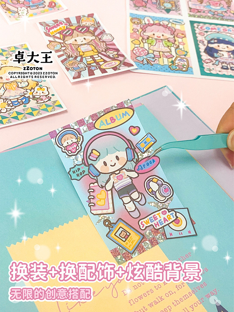 萌崽新款学霸学渣果冻贴纸安静书儿童免裁剪手工粘贴DIY女孩趣味玩具