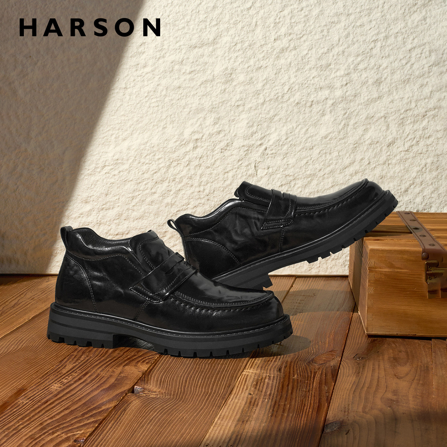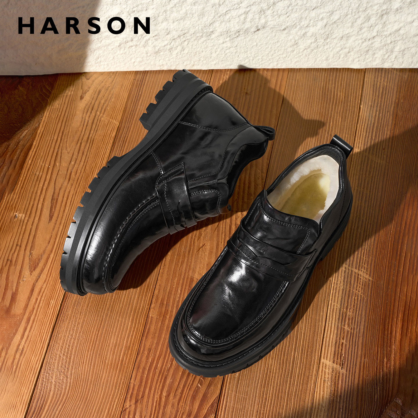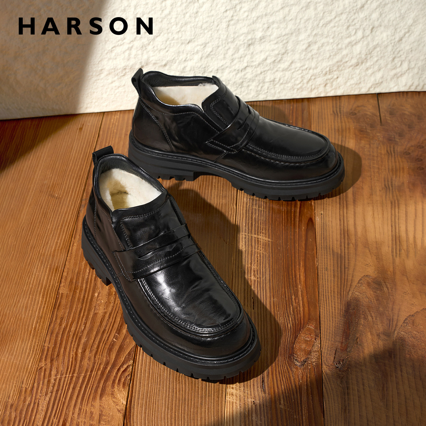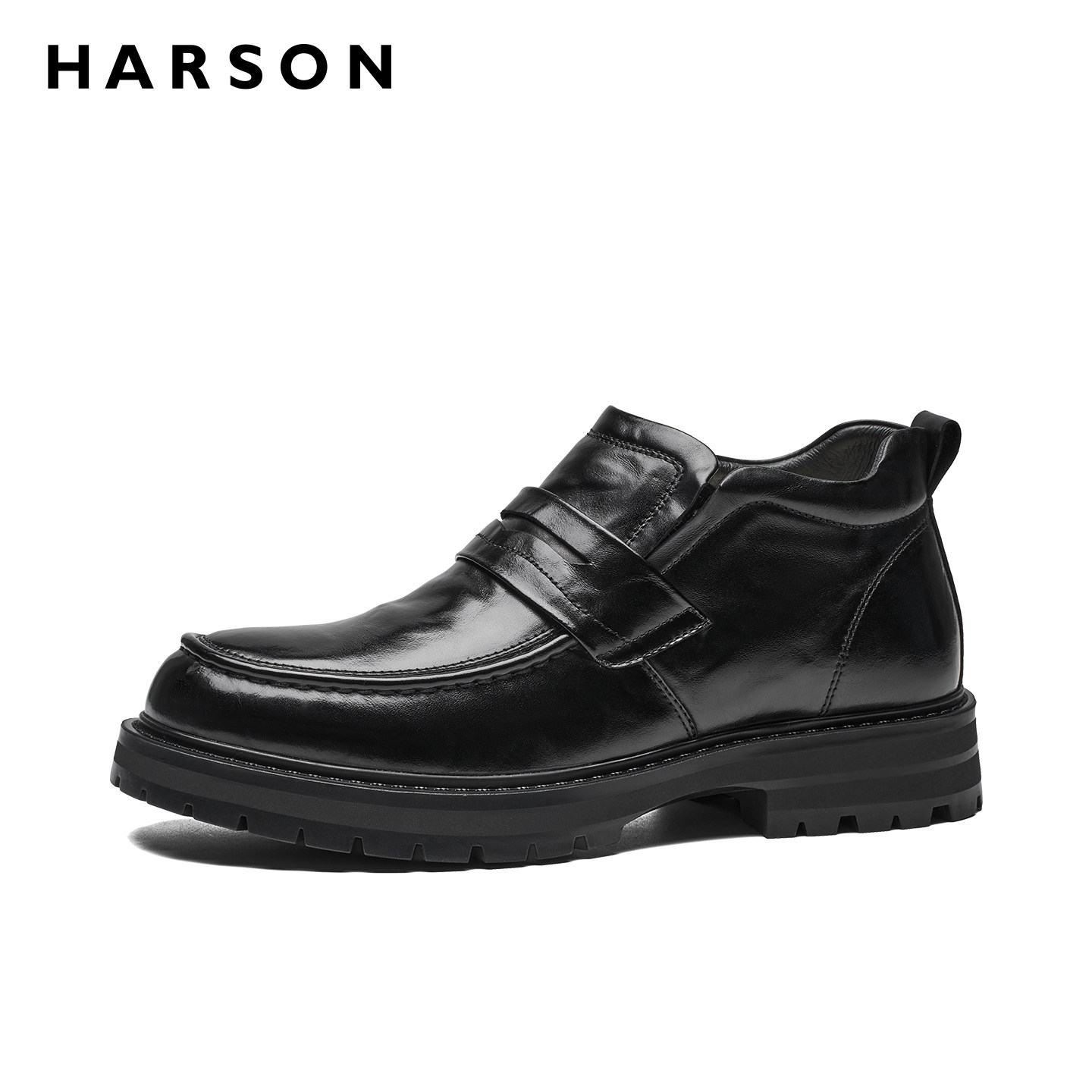 哈森商务休闲皮鞋冬季加绒男鞋真皮羊毛英伦短靴软底防滑保暖皮靴